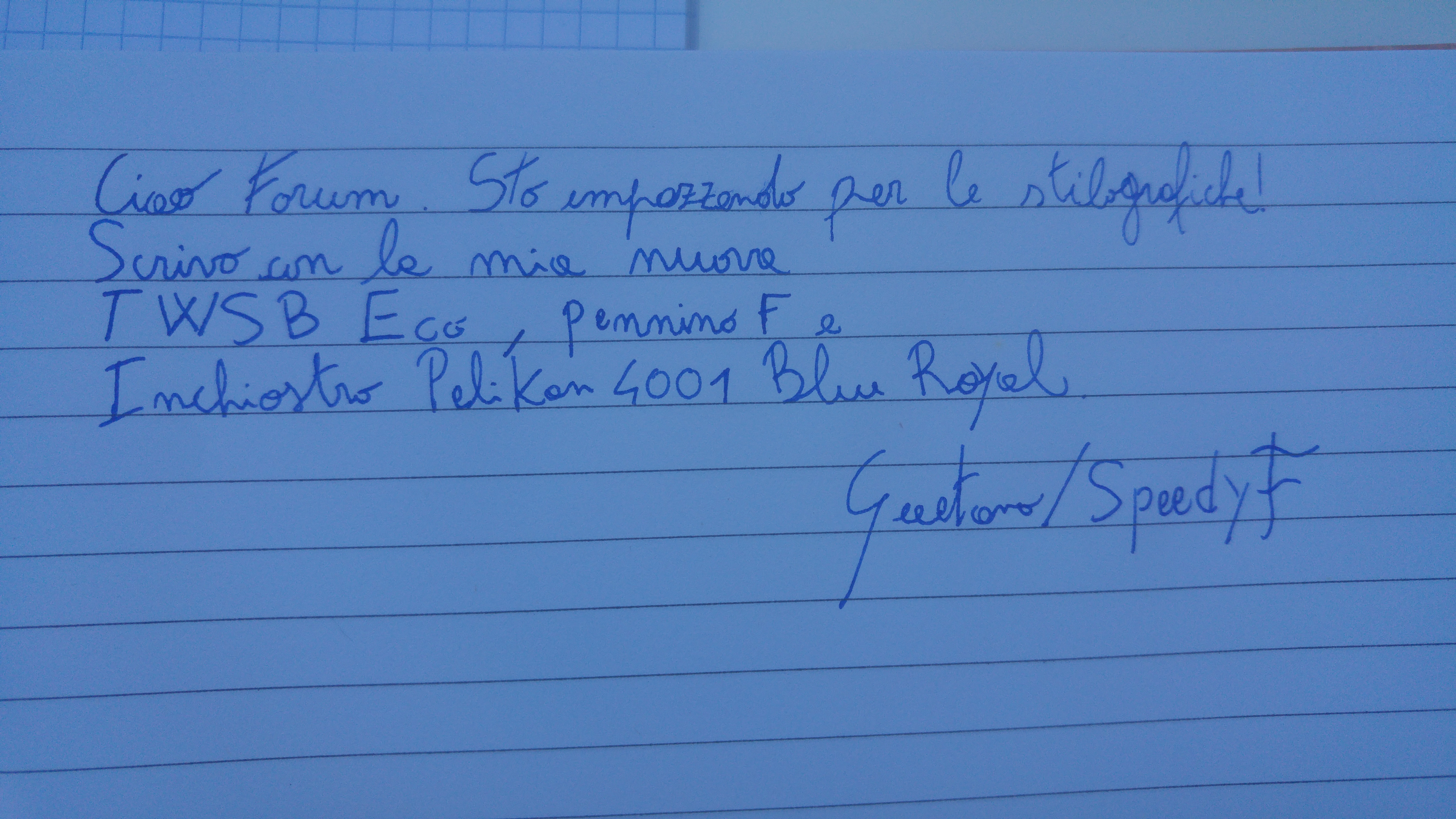 Ottima scelta, la Eco secondo me è la miglior penna come rapporto prezzo/prestazioni (nella categoria delle penne a pistone). Hai provato a cercare nel forum se qualche consiglio per i mancini?