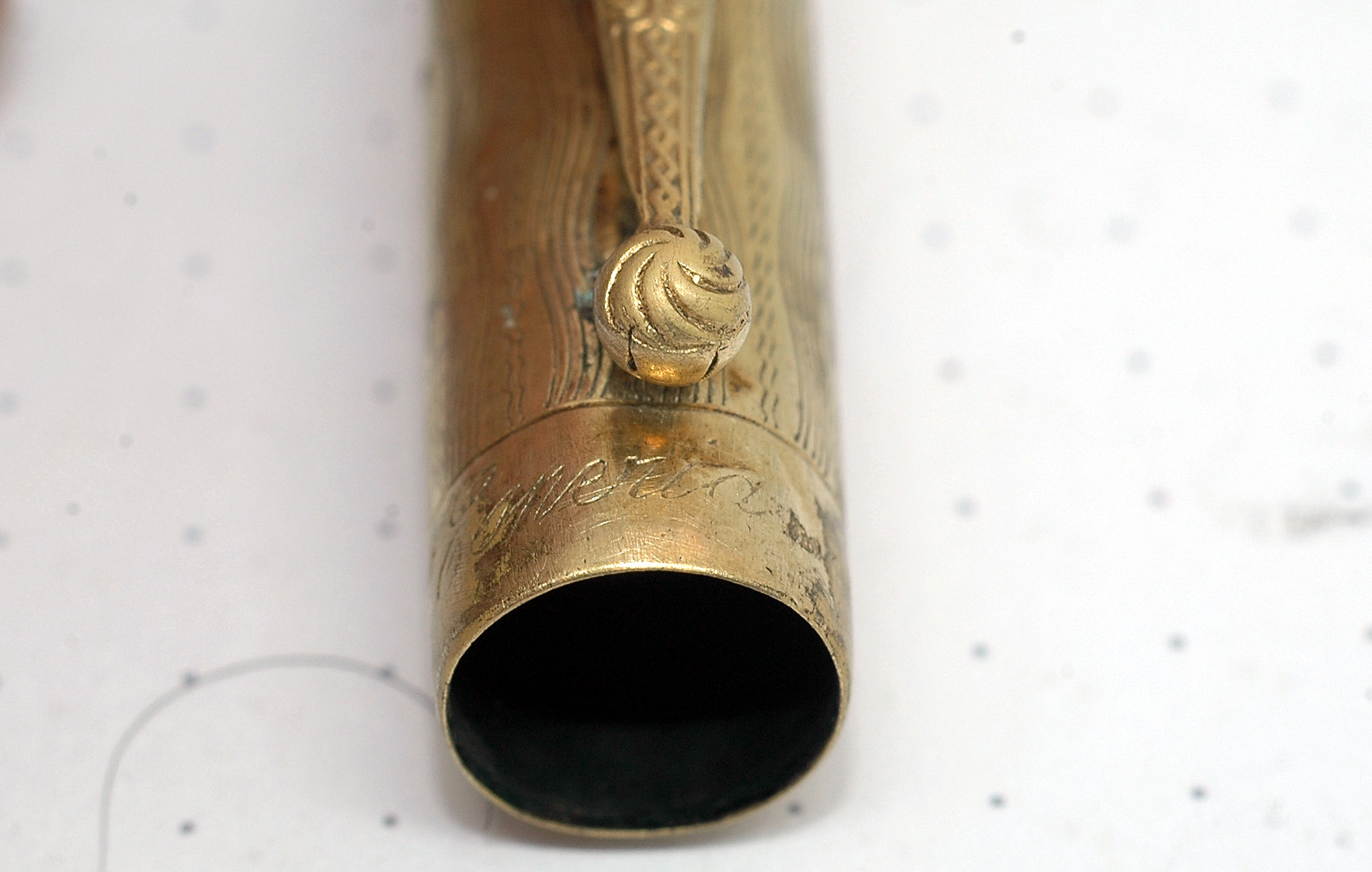 Fa sicuramente fede il marchio sulla laminatura: il pennino si sostituisce troppo facilmente. Quindi è una Artil. Non mi preoccuperei tropo della tenuta corpo/cappuccio; difficile avere perdite da quella parte e comunque io ho sempre trovato tenute di ebanite contro ebanite. Il pennino e l'alimentatore li devi estrarre dopo averli tenuti a lungo a bagno; non si può battere da dietro come nelle altre penne, ma dovrebbero venire fuori forzandoli un pò lateralmente, prima da un lato e poi dall'altro. estratto il pennino l'alimentatore dovrebbe sfilarsi abbastanza agevolmente. Se proprio non ne volesse sapere puoi scaldare un pò la parte, ma attenzione a non deformare l'ebanite.