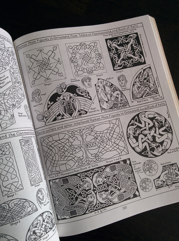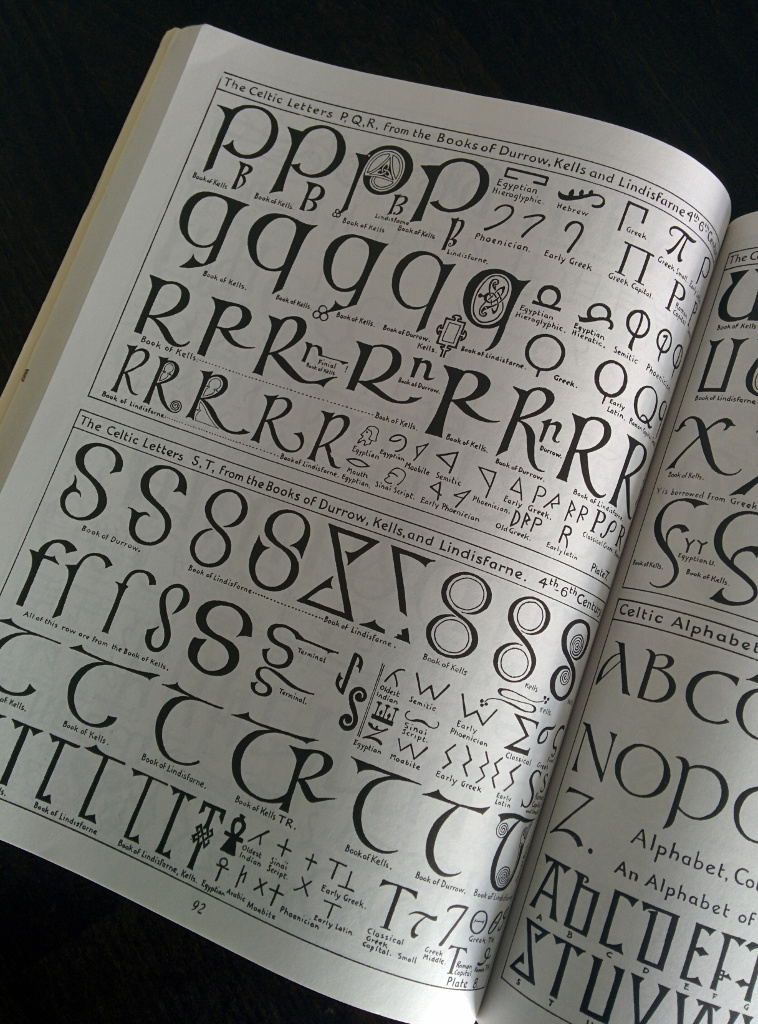 L'autore ha fatto un enorme lavoro di studio e catalogazione delle decorazioni di stile celtico che si trovano in celebri manoscritti insulari (uno per tutti: Book of Kells) e reperti archeologici, ha riprodotto tanti esempi fornendo anche i metodi per farne di uguali o, con un po' d'ispirazione, per creare i propri. C'e' anche una sezione dedicata alla calligrafia con esempi proveniente da vari codici, ma, come gia' scritto, non e' un libro di calligrafia, non ci sono istruzioni dettagliate su come creare i caratteri.