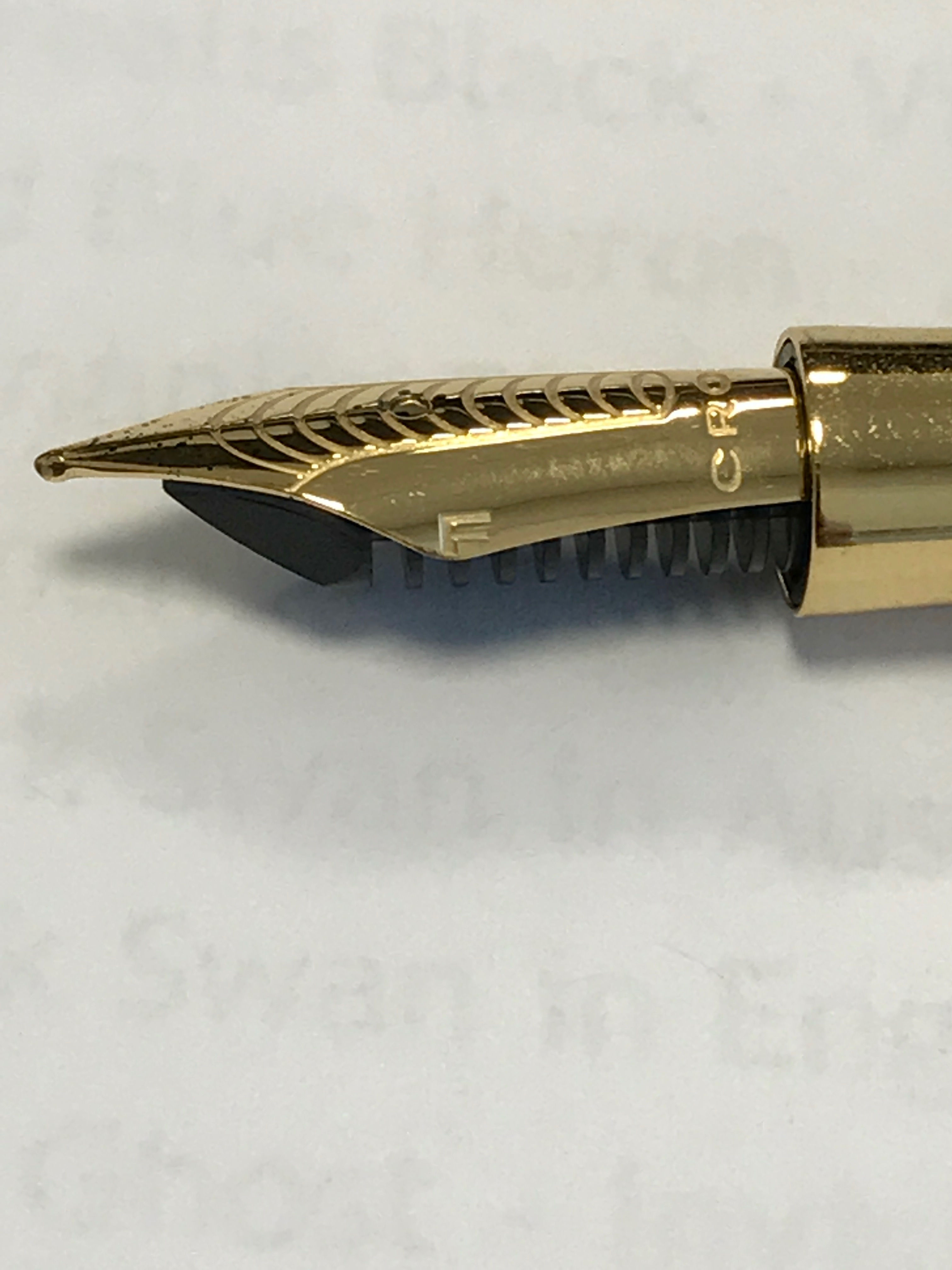Pennino F, diciamo che tutte le mie stilografiche sono equipaggiate con pennino a tratto F, ma questo è un pochino più “largo”….passatemi il termine.