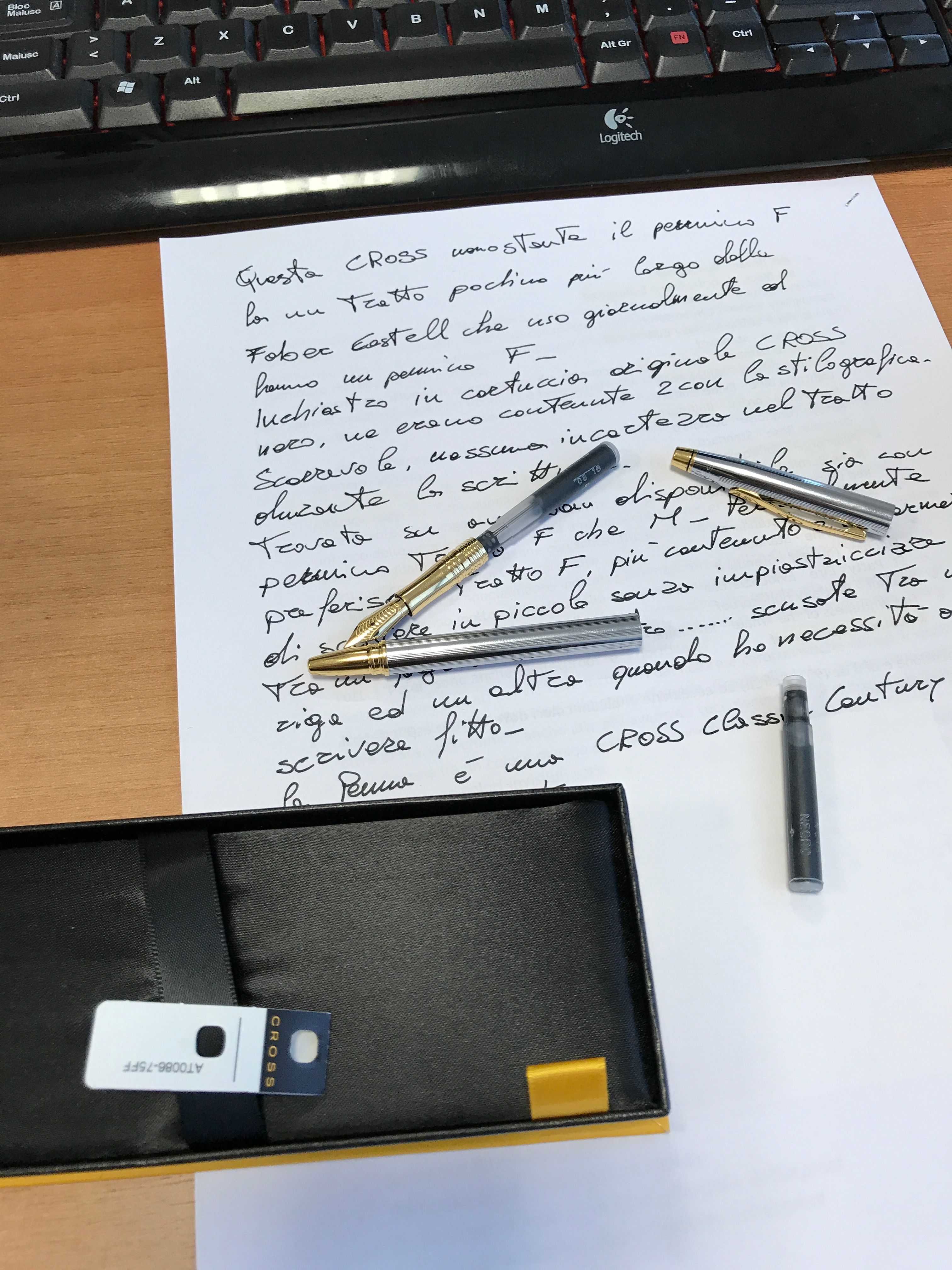 Come dicevo il suo tratto F paragonato alle mie Faber Castell serie E-motion tutte con pennino F, è un pochino più generoso, e l’inchiostro si lascia depositare sul foglio senza interruzioni e sbavature. Direi perfetto per i miei canoni……e mi permette di scrivere anche in maniera fitta sia in larghezza che lunghezza……