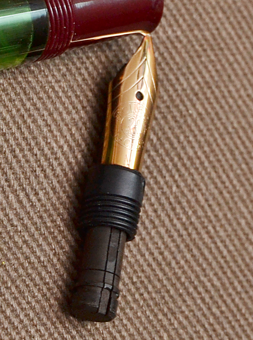 Vedendo questa foto puoi regolarti, controlla se il cilindretto non presenta spacchi altrimenti il gruppo pennino/alimentatore non si blocca e scorre libero.