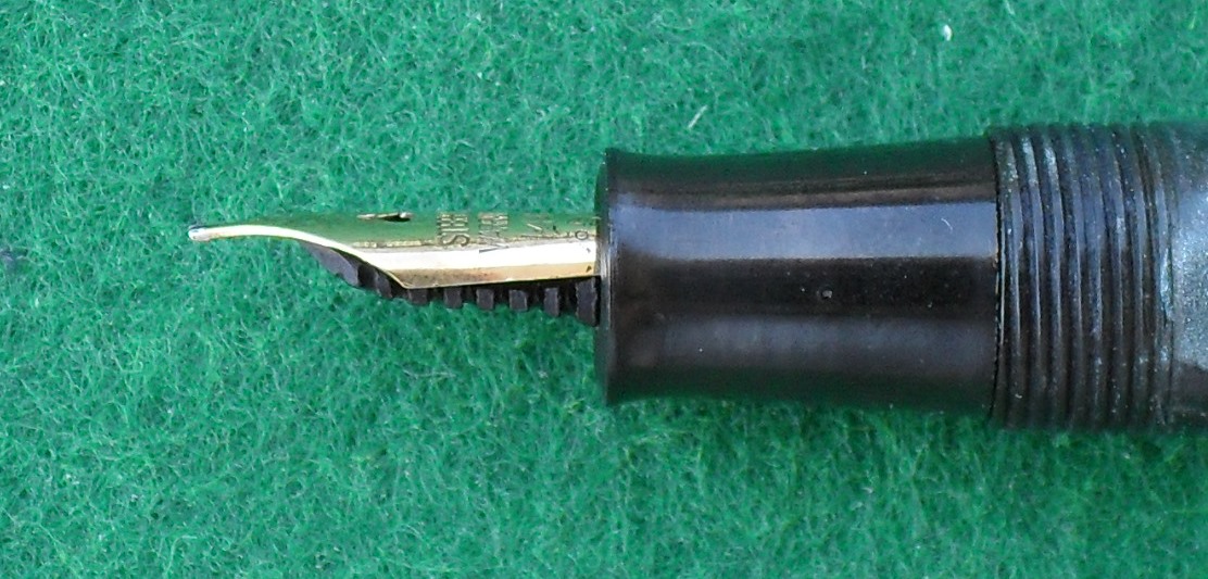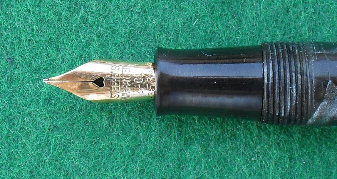 Quella che vi presento oggi è la variante base, contraddistinta dal numero 56, da un pennino d’oro a 14 carati di piccole dimensioni e da finiture rodiate. Nessuna veretta orna il cappuccio. Una stilografica adatta a quei tempi difficili, che non concedeva molto agli orpelli ma che manteneva tutta la qualità necessaria, sia in termini di materiali sia quanto a robustezza e regolarità di funzionamento.