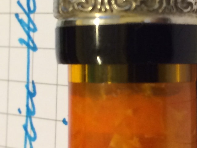 La penna è stata tenuta maniacalmente, mai caduta, sforzata o sottoposta ad alte temperature, non presenta nemmeno un graffio, è assolutamente pari e indistinguibile dal nuovo a meno di questa sorta di trasudazione di inchiostro tra due strati interni alla penna.