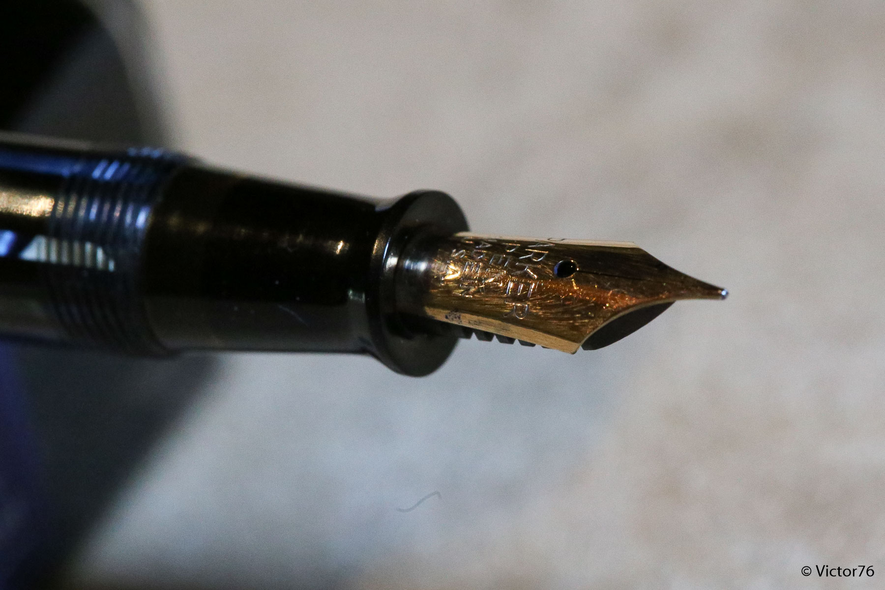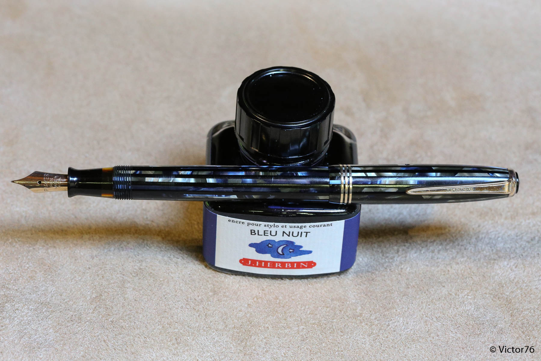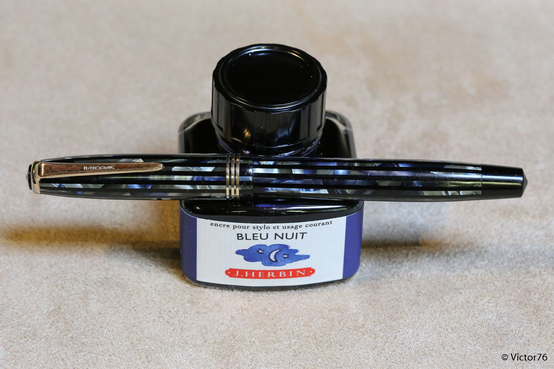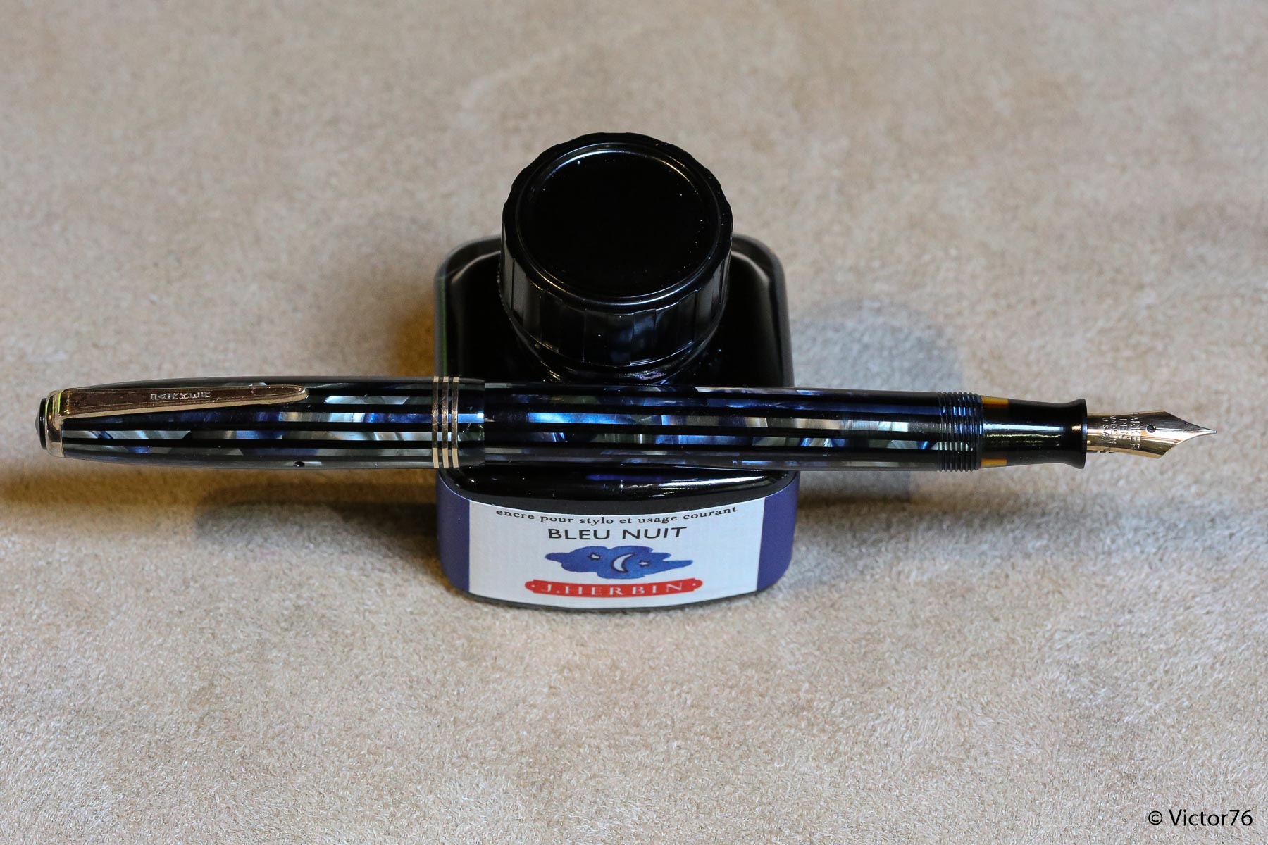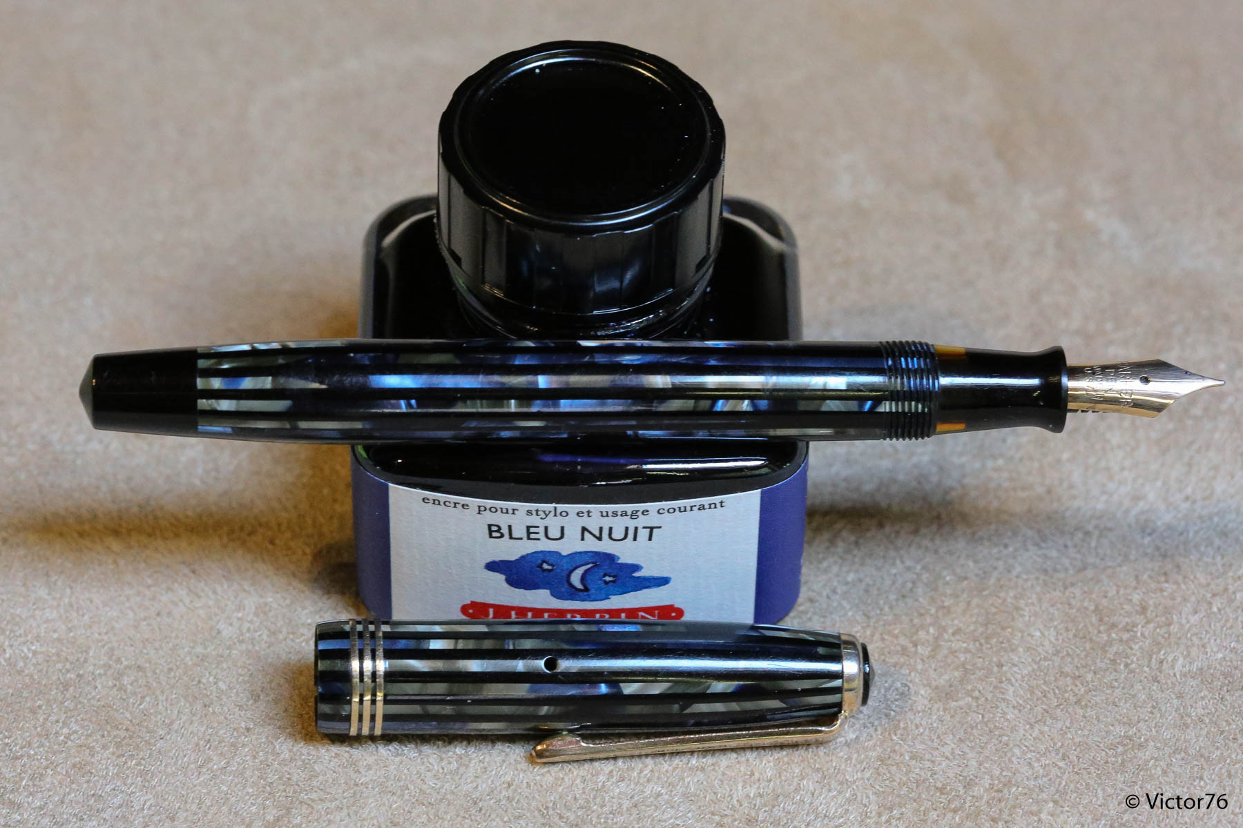 La penna è effettivamente bellissima. Non nego che mi piaccia anche un pochino di più della Vacumatic classica, con striatura nell'altro verso e più sottile, ma magari è la novità.