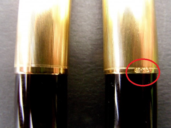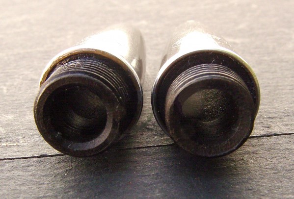 In quest'altra foto è abbastanza evidente anche la differenza del diametro della filettatura sul puntale, anche se la foto è mirata per mettere in risalto le differenze sul marchio, del quale è stata cambiata la tecnica d'incisione; ad occhio nudo passa abbastanza inosservato ma si noti come nel vecchio puntale era decisamente migliore.