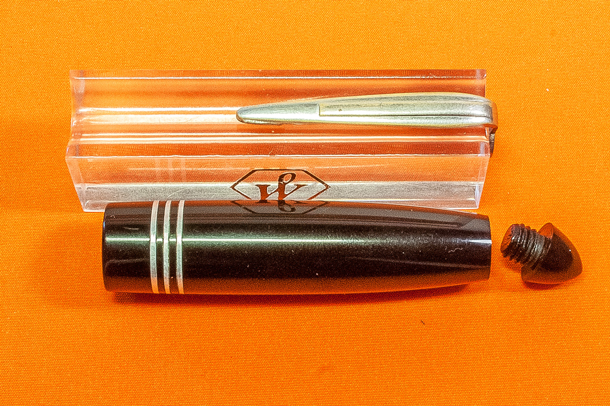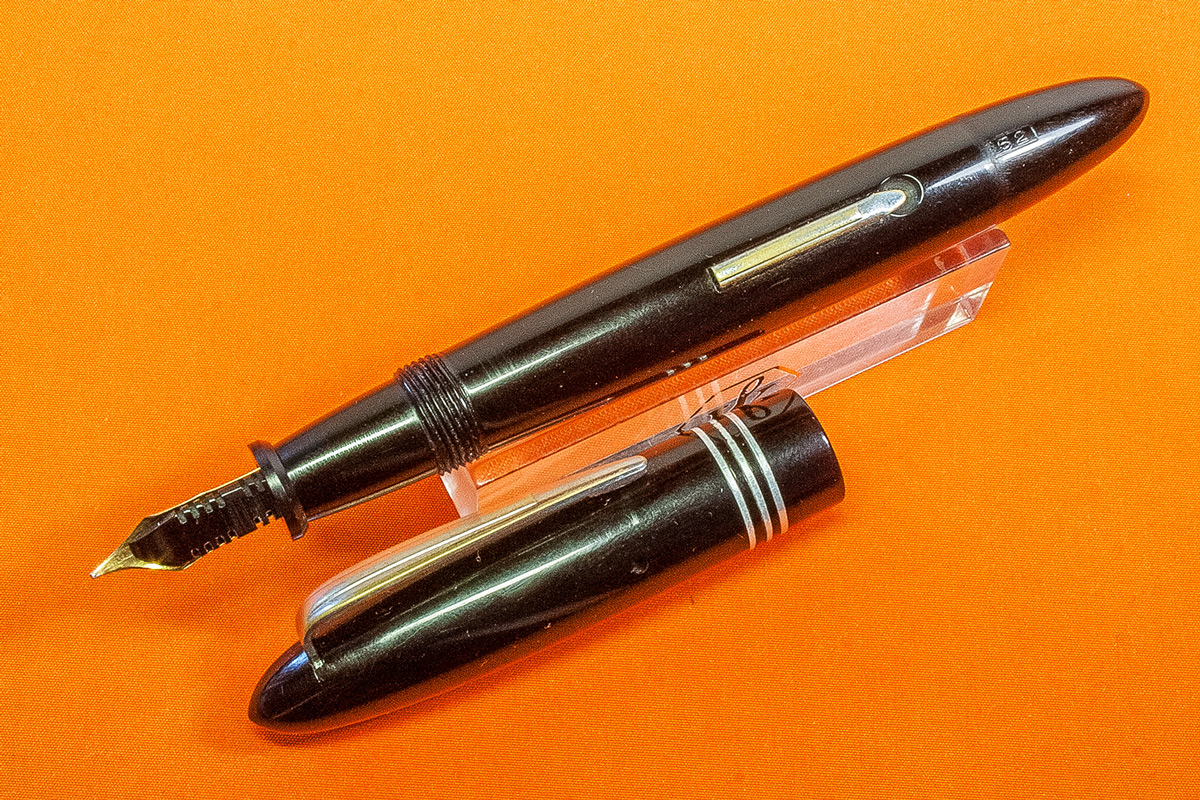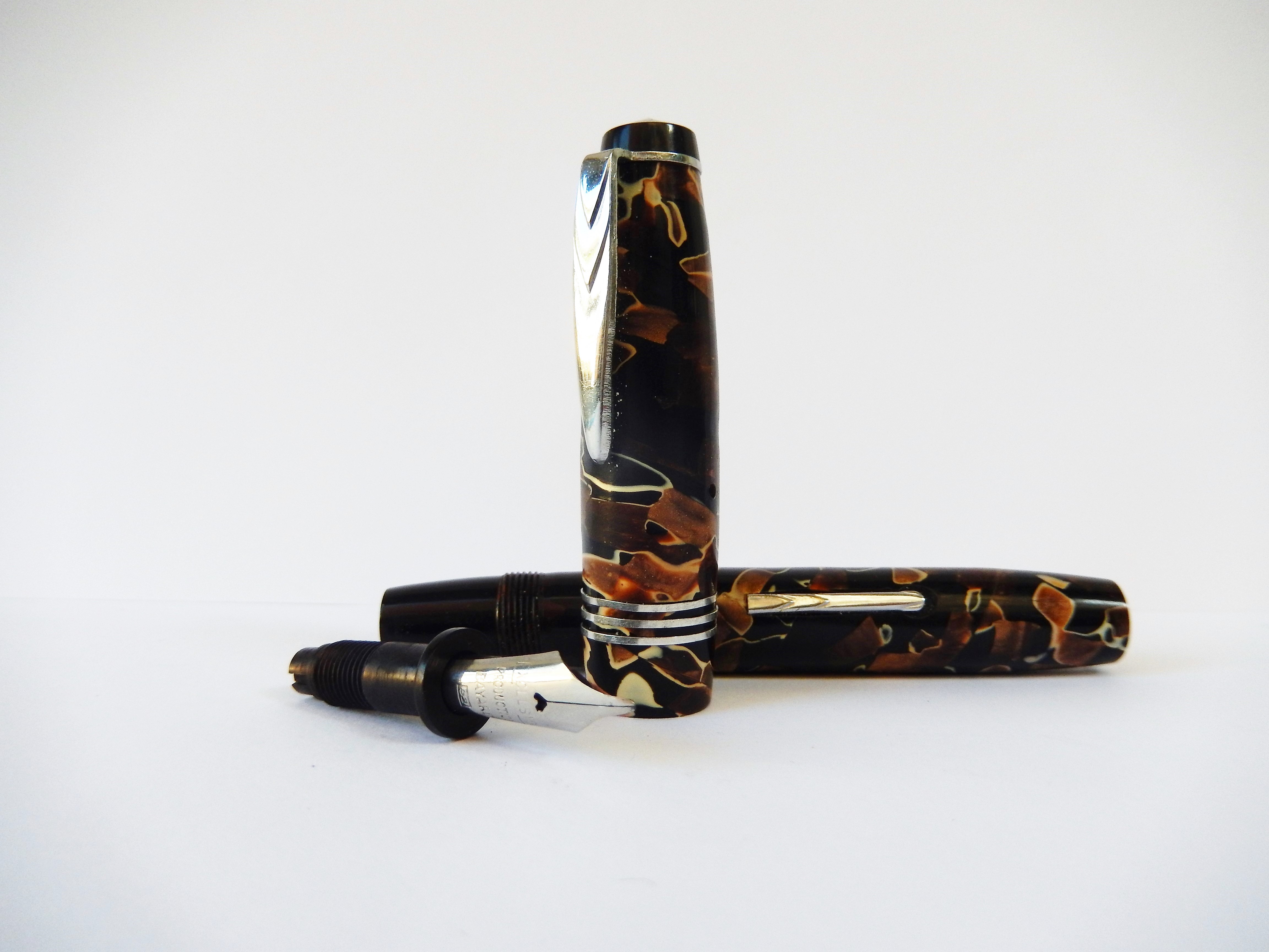 Erano quelli gli anni delle Vacumatic del tempo di guerra, dove il pulsante di fondo in alluminio veniva sostituito in quanto materiale strategico.