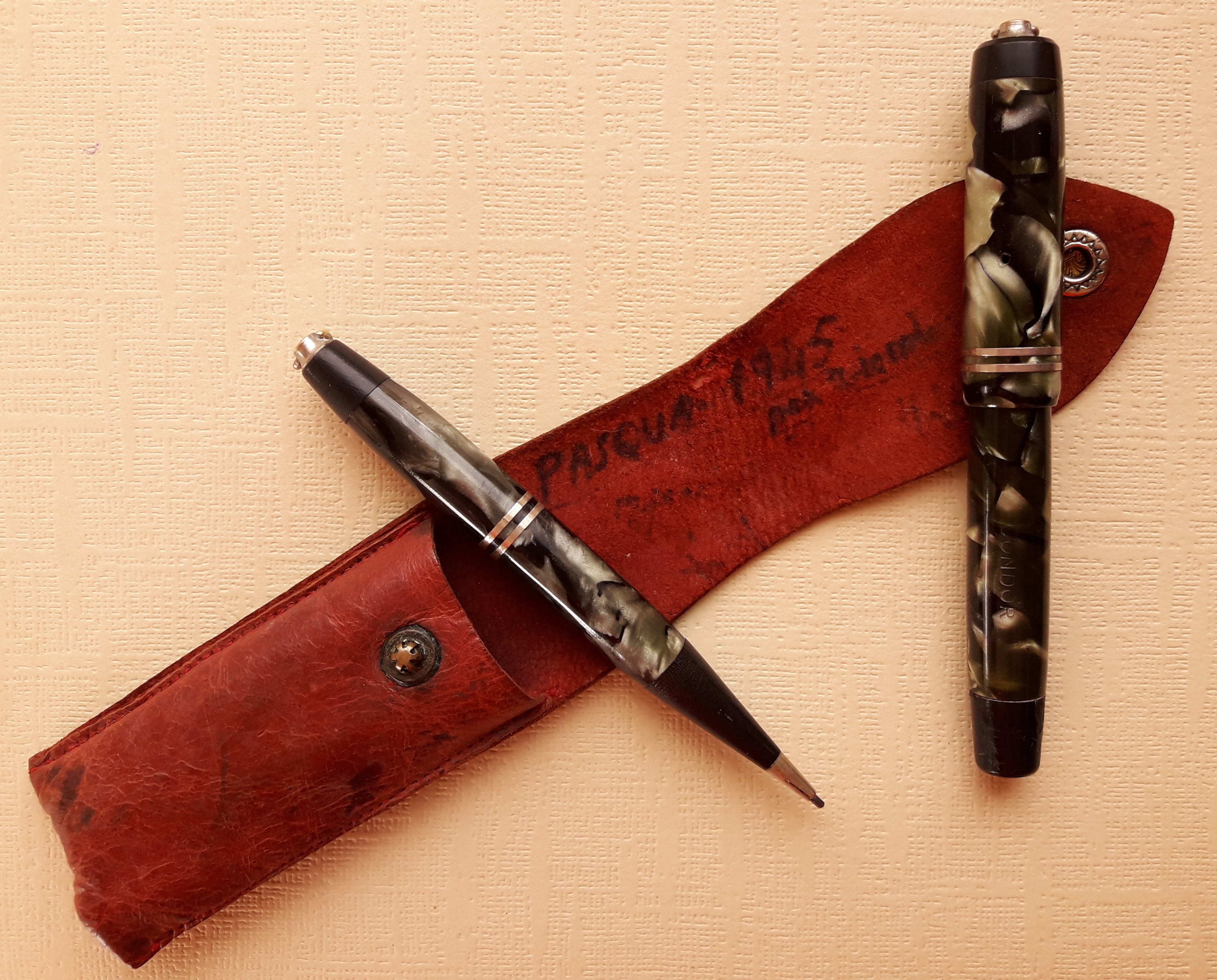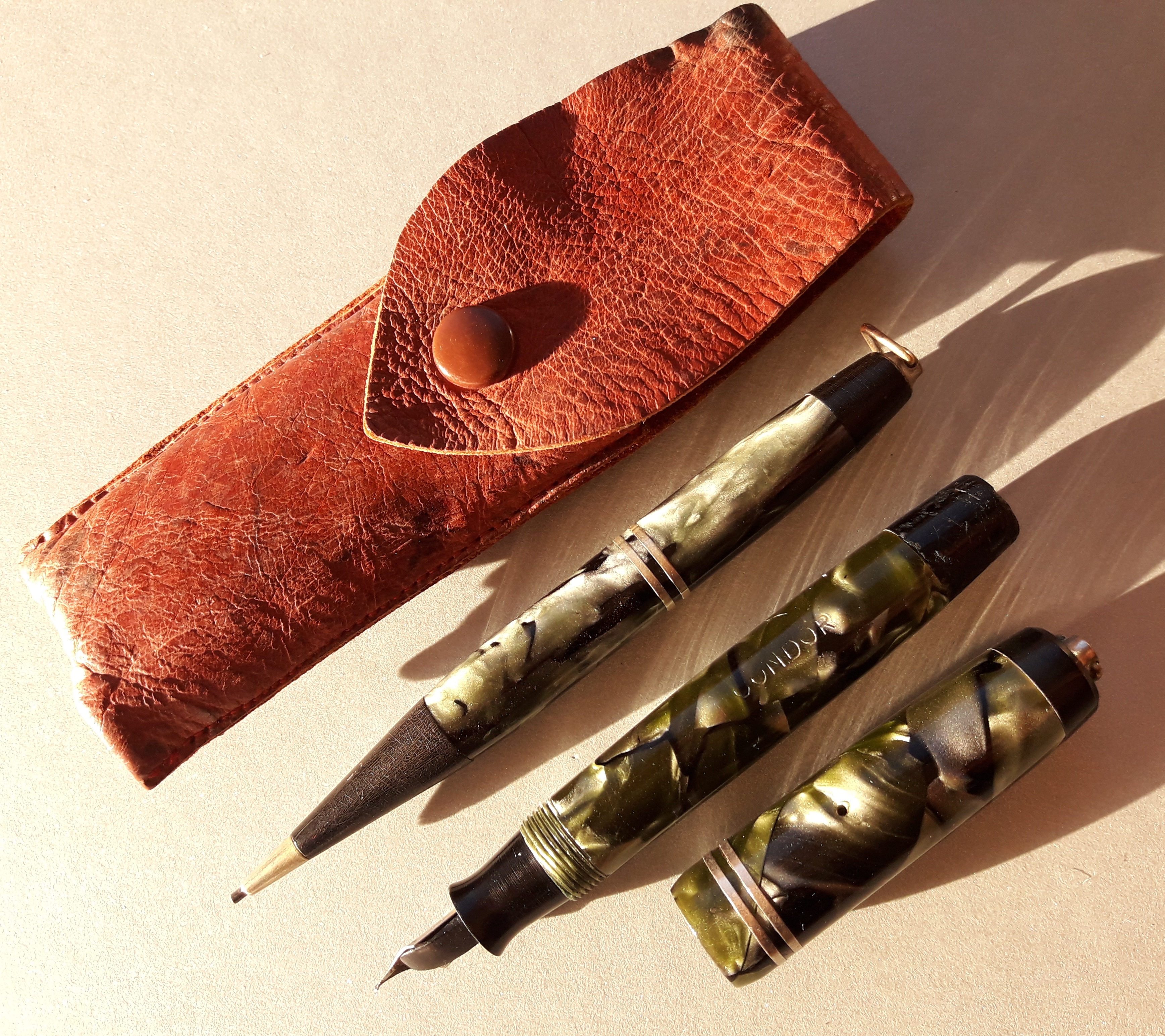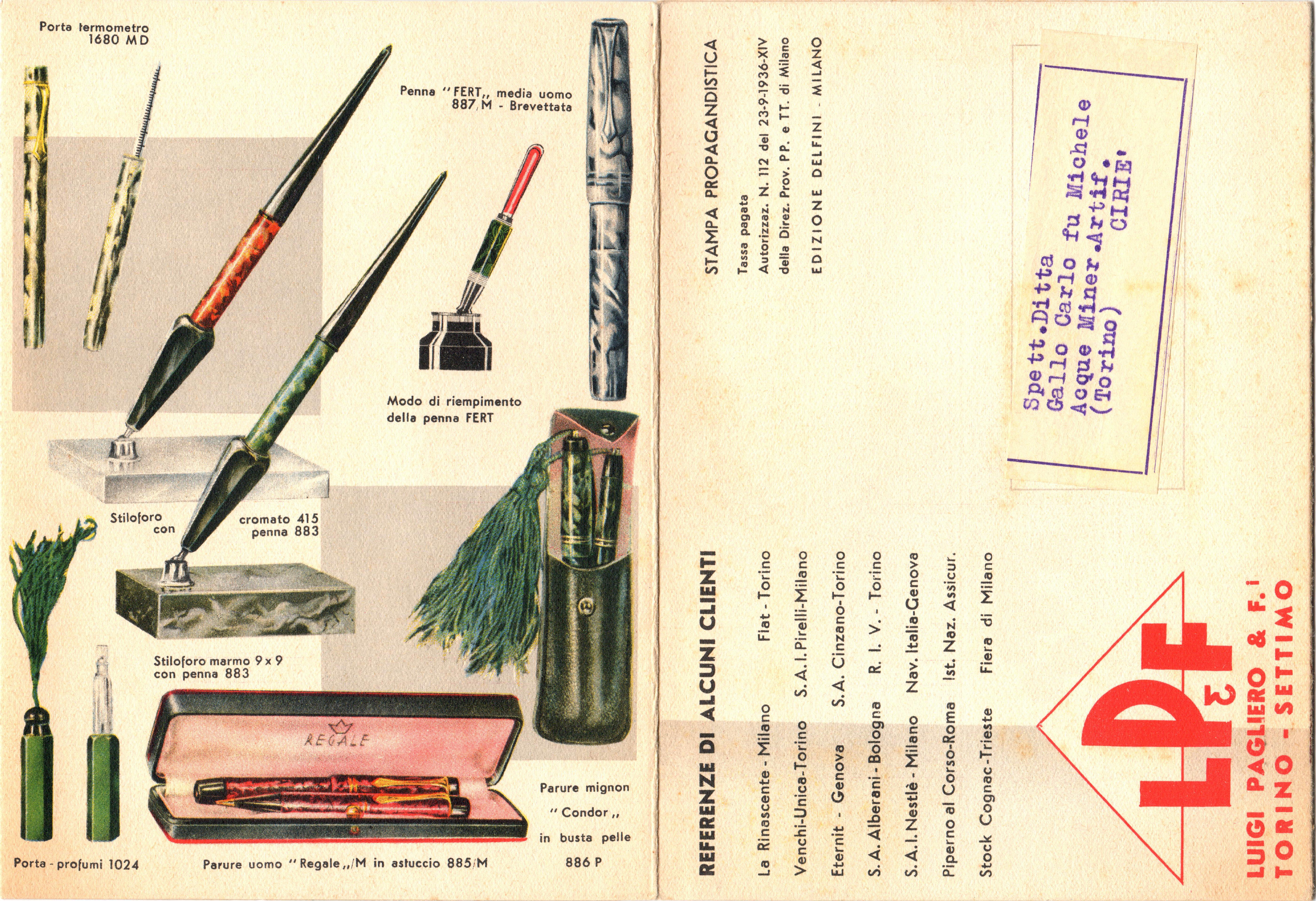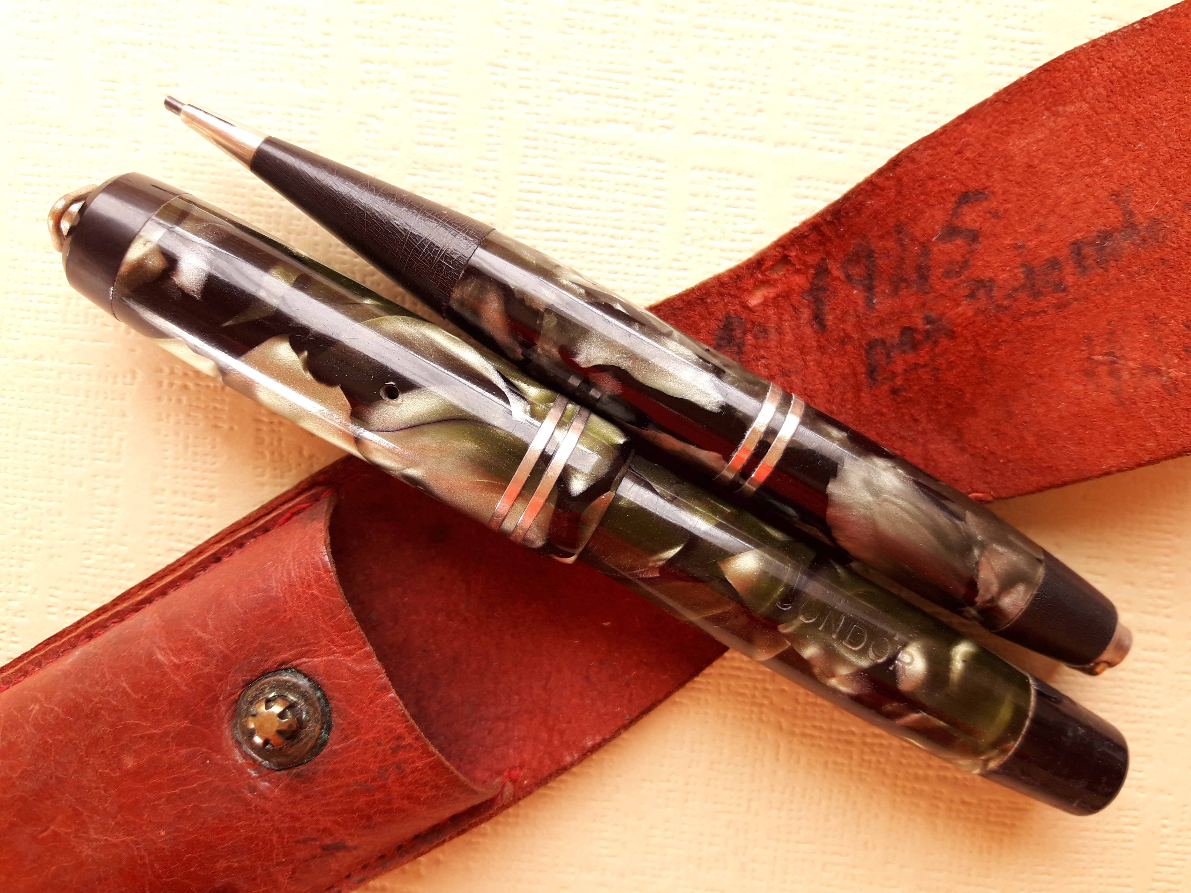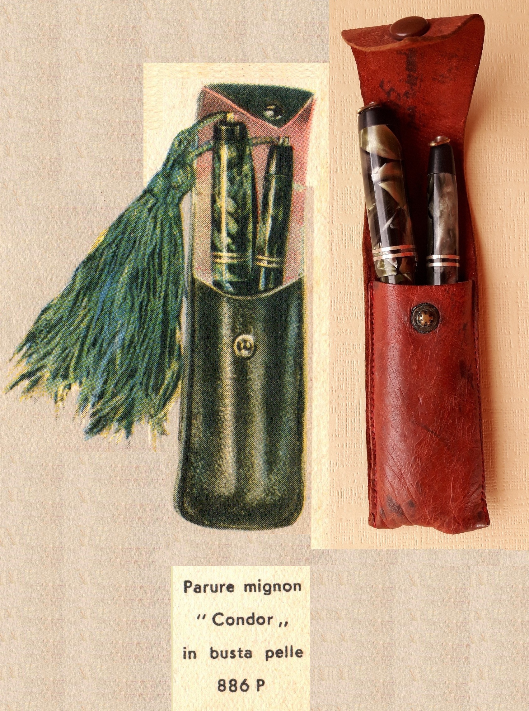 è stato possibile attribuire alla storica ditta Pagliero di Settimo Torinese (https://www.fountainpen.it/Pagliero ) la paternità del marchio FERT (con caricamento brevettato) e di anticipare al 1936 il cambio di denominazione della ditta produttrice in “LP&F – Luigi Pagliero & F.[igl]i – Torino - Settimo”. Nella stessa pagina della preziosa brochure pubblicata ho così potuto riconoscere un set di penna stilografica/matita meccanica marchiato Condor che avevo messo da parte tempo fa, in attesa di poter svolgere adeguate ricerche… Ho così appreso con certezza che la marca Condor faceva parte dell’affollatissima scuderia Pagliero, che dagli anni Trenta al secondo dopoguerra inoltrato era andata producendo penne stilografiche sotto una pletora di marchi diversi: dalla più ricercata a quella più tecnologicamente avanzata alla più economica (perché, come recita la brochure, Pagliero “ha studiato anche dei costi veramente limitati”) all'azienda settimese si possono ricondurre le marche Plevonia, Prismatica (nella brochure una Prismatica Extra, in stile Omas Extra, che stranamente Letizia Jacopini nella sua Enciclopedia ascriverebbe alla S.A.F.I.S.), Regale, Red Circle, FERT, Stilnova, Fulgens, Vereletta/Verelite/Verelyte, Secolgraf (matite)… e CONDOR!