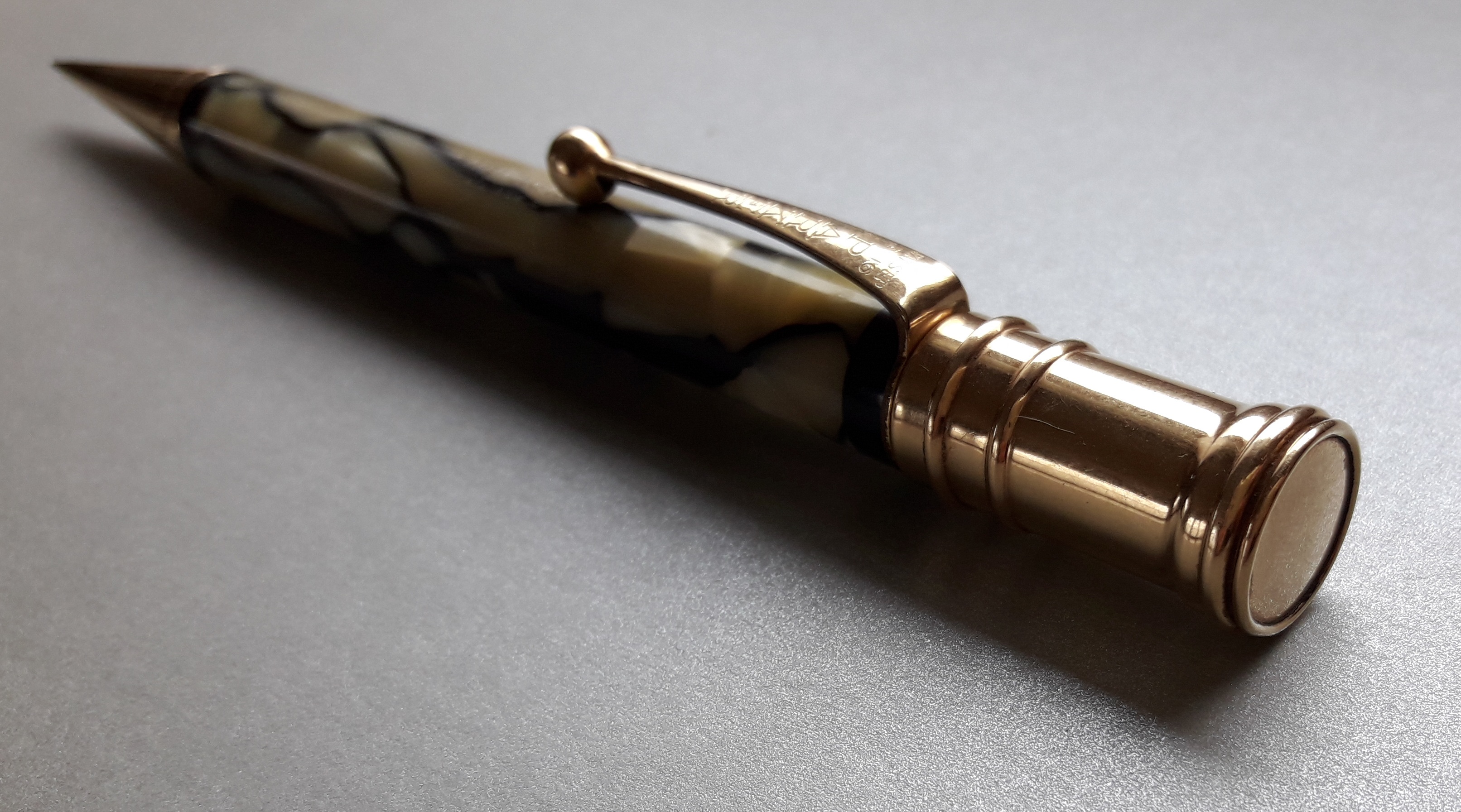 Ben lo noterebbe chi avesse l’ardire di introdurre lo strumento nel proprio taschino: il cappuccio spunterebbe di oltre due centimetri e mezzo(!!), tutti di lamina d’oro, per un diametro di cm.1,2… :o