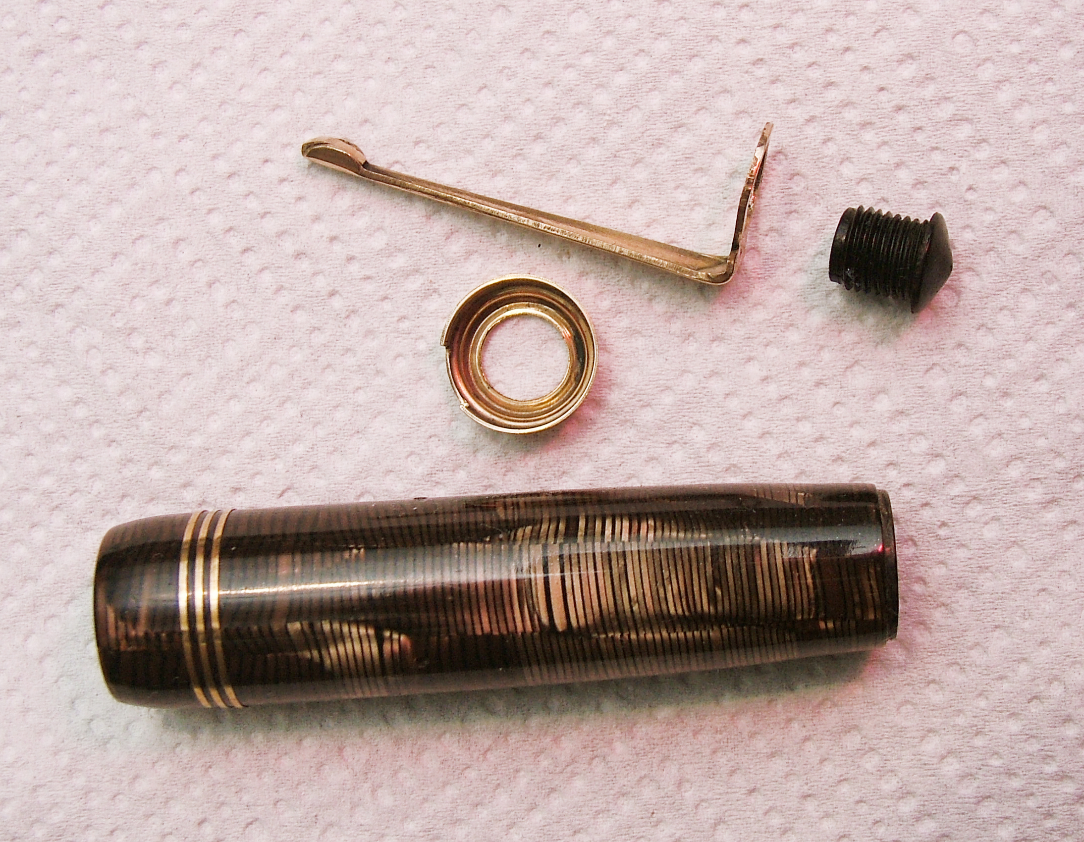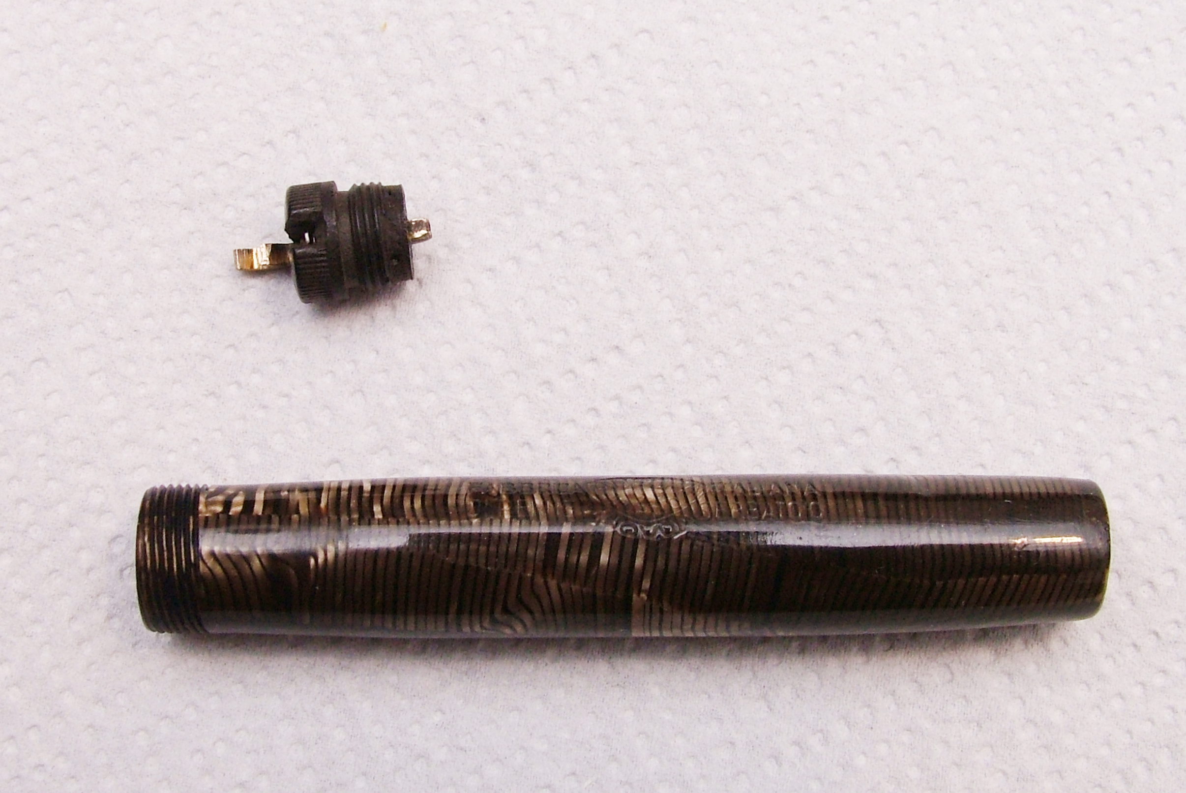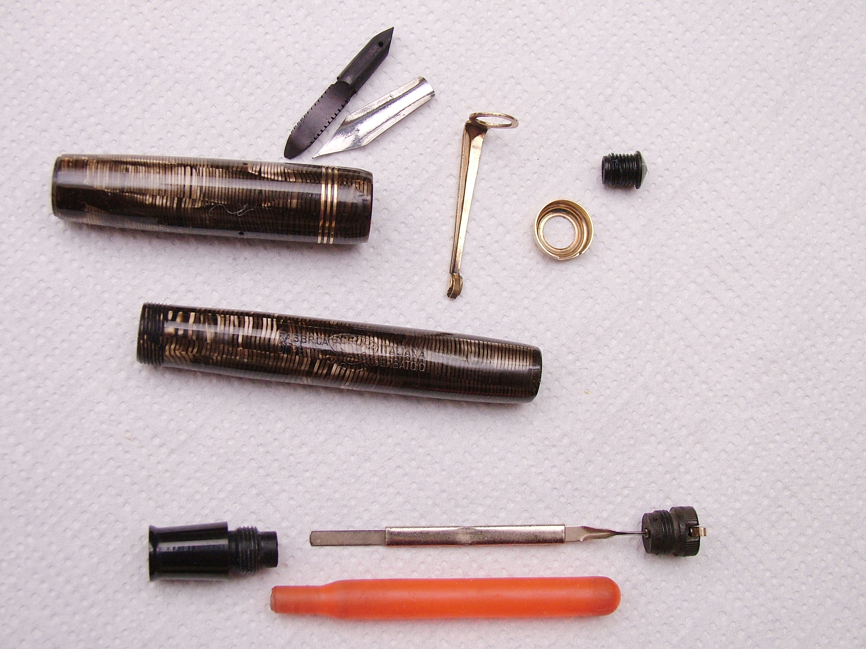 La penna è stata completamente smontata in ogni sua parte tranne il controcappuccio che in un primo tempo avevo levato, poi rimesso e da allora non sono più riuscito a levarlo.