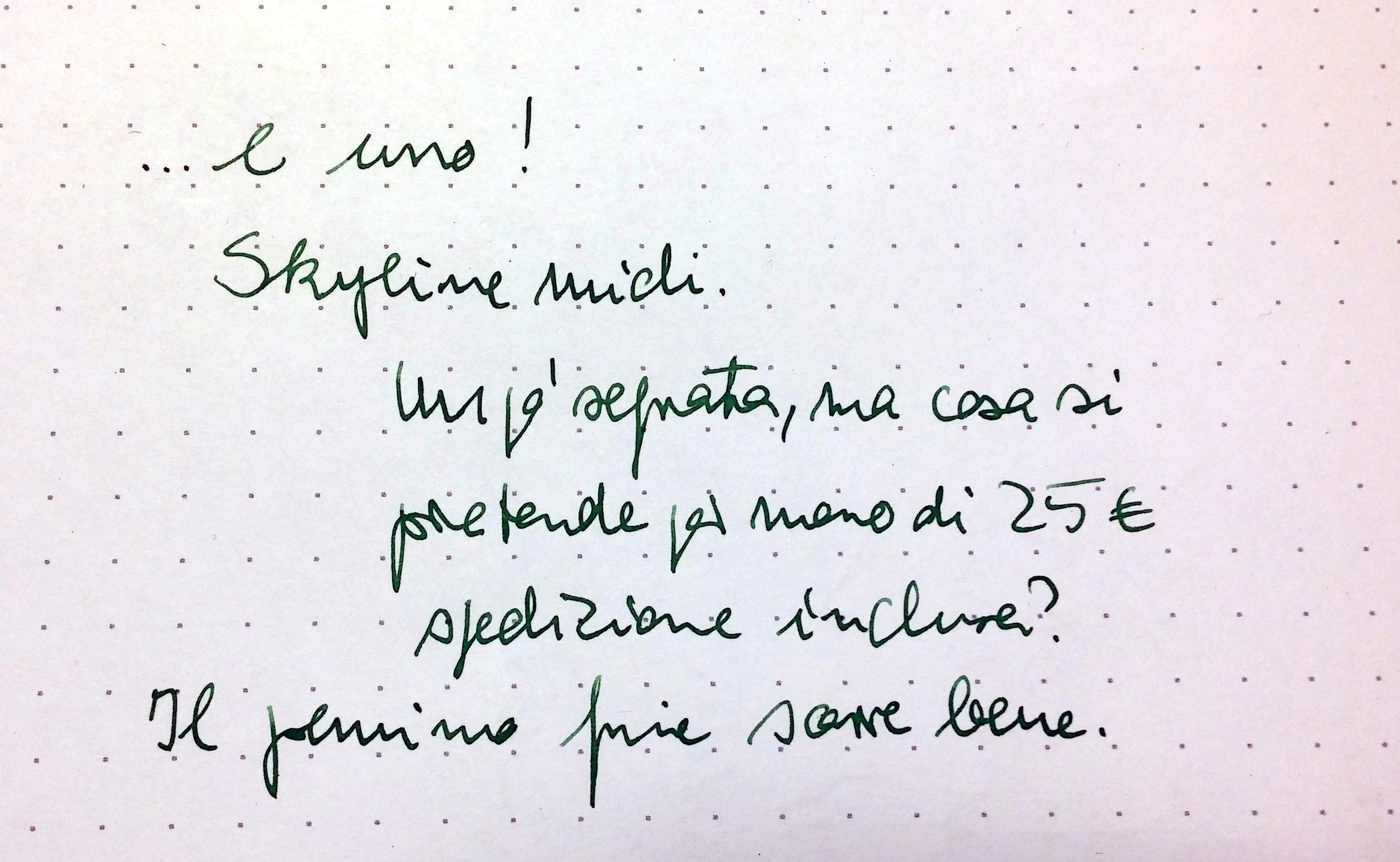 Ah mi sono arrivate anche le relative penne, che al momento sono alle terme: una Valiant (forse, ché mi imboglio con i modelli delle Snorkel) azzurra ed una Skyline midi... sulla quale avro domande relativamente al cappuccio.