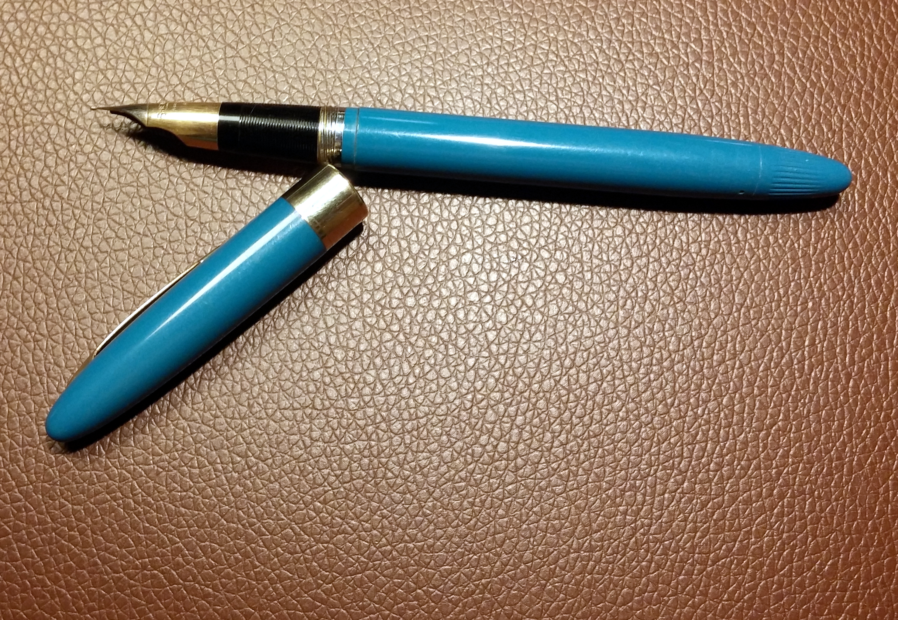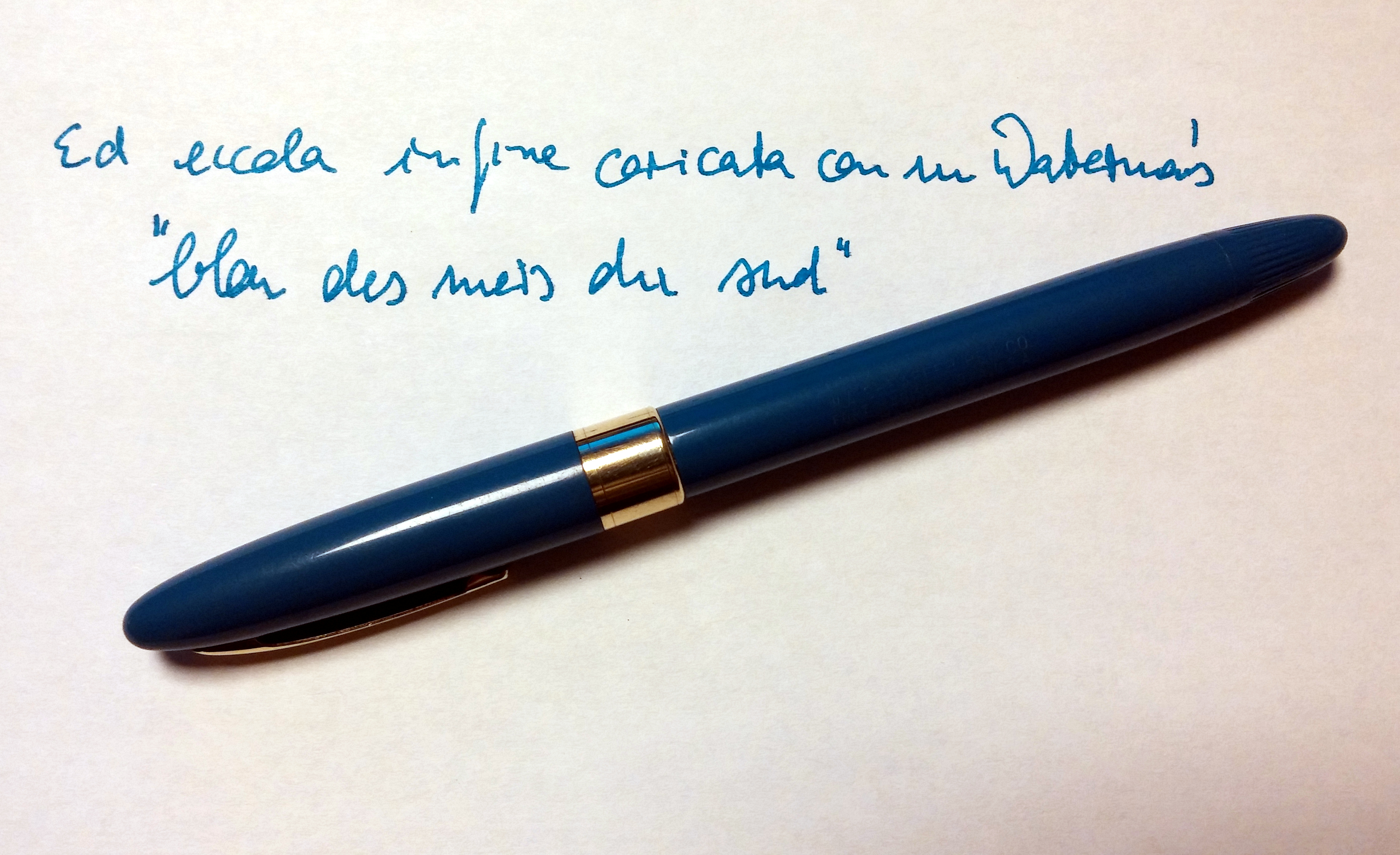 E infine ecco tutta di pennino raddrizzato, pulita e lucidata la Valiant Azzurra. Ho dovuto un po lavorare. Il sacchetto non solo era cristallizzato, ma era anche totalmente incollato al sac protector. Il pennino era alquanto storto in punta (girava a destra, un rebbio su ed uno giù). Ma queste penne sono sempre divertenti da ripristinare.