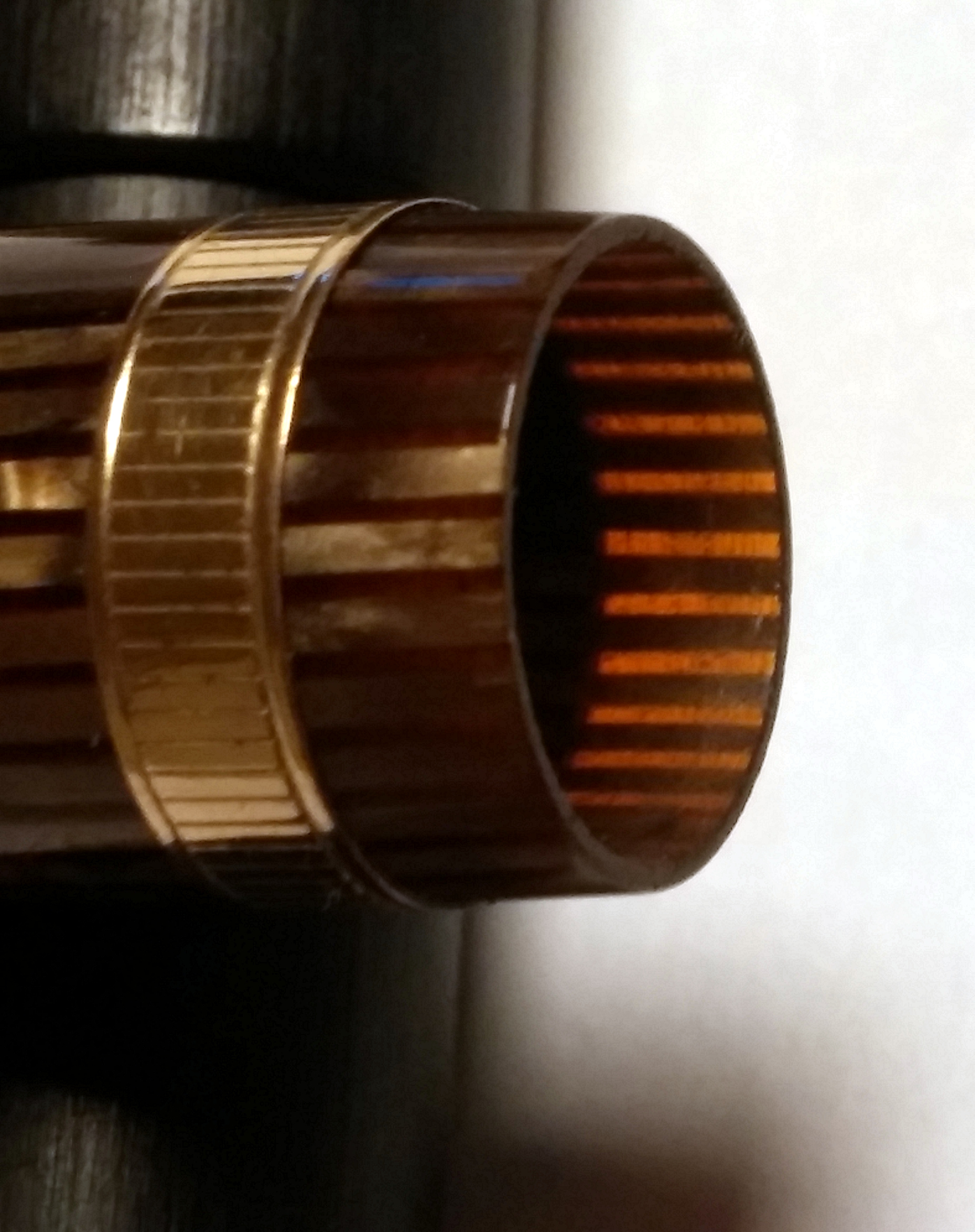 In effetti mi trovo d'accordo con Giorgio sul fatto che le scritte sui corpi penna - probabilmente - non erano in origine evidenziate. Quindi per essere filologicamente corretto ma anche migliorare la visibilità della scritta ho fatto ricorso ad una cosa che a noi pennaioli non manca mai: il talco.