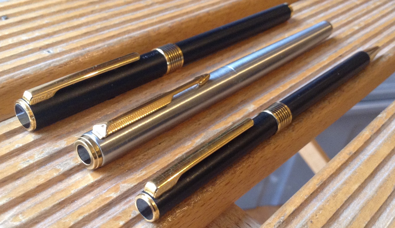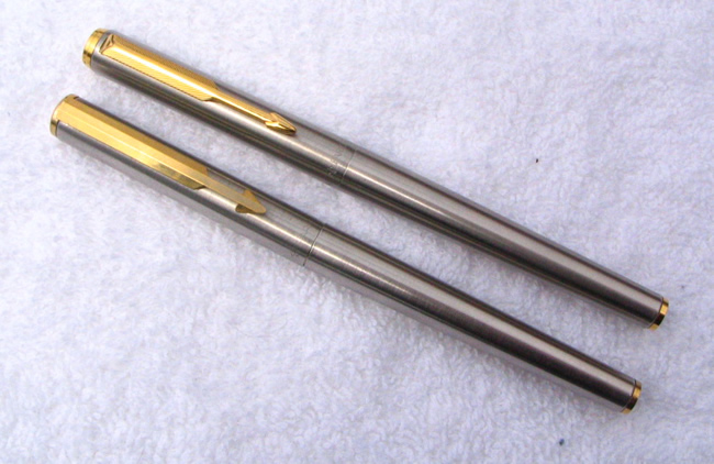 In questo caso clip e anelli a fine cappuccio e fusto sono placcati oro 23 ct., ad evitare la completa uniformità dell'acciaio che spesso caratterizza le Parker di questo periodo. In UK fu comunque prodotta una 95 completamente priva di placcature oro: acciaio uniforme.
