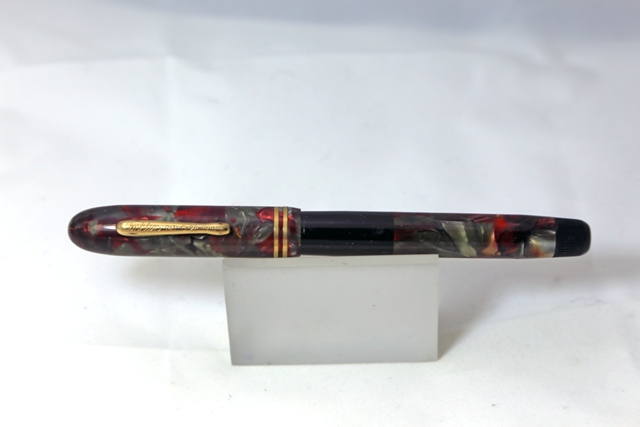 "Ban-ei" Red Urushi. 14k nib. Eyedropper with shut off valve.