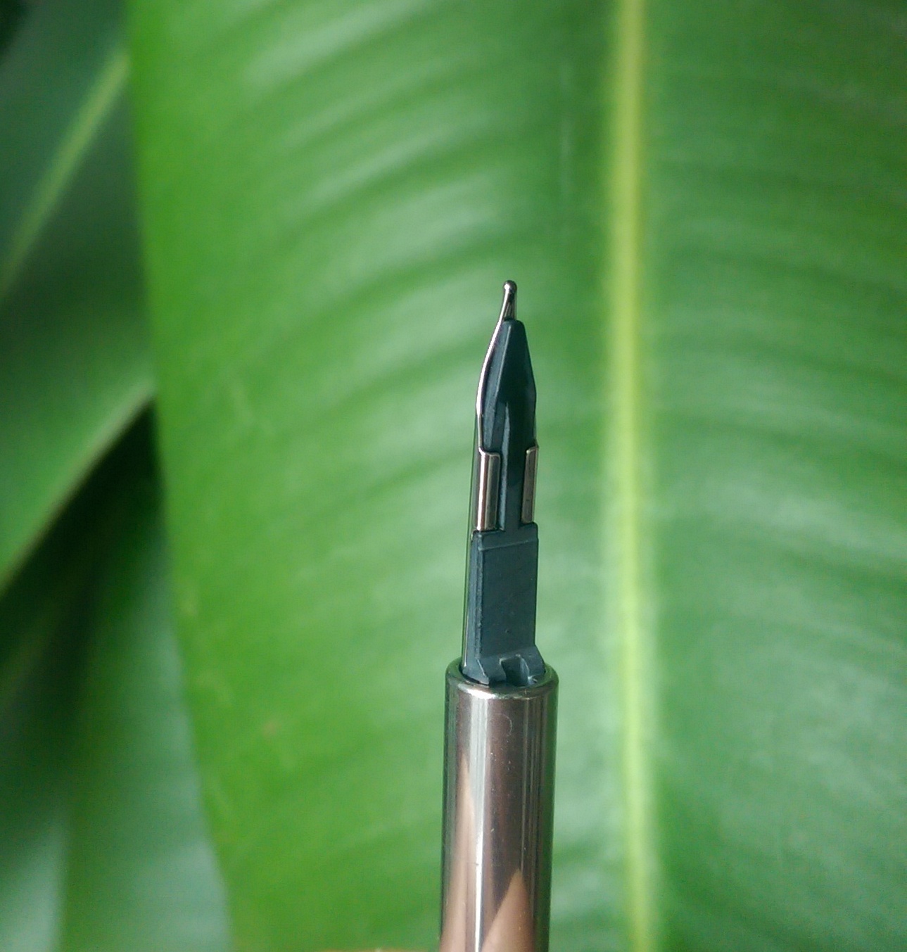 Il pennino esce piuttosto inclinato rispetto alla penna, ho cercato in rete delle foto ma non ho trovato niente di preciso.