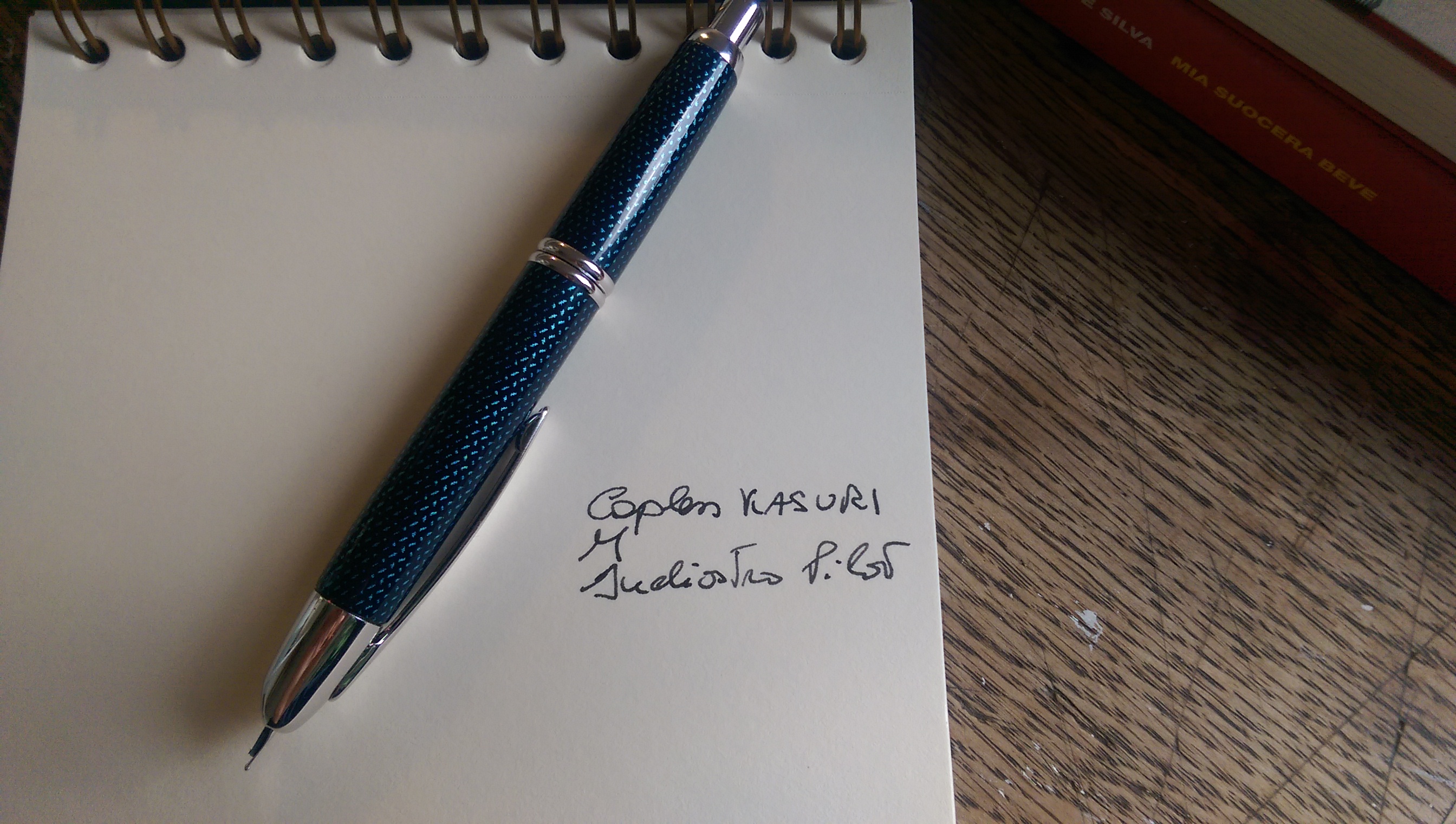 Per quanto riguarda il tratto, mi va bene il Medio, devo dire che è più fine rispetto a quella che avevo provato ma... è un pò meno fluido, non so se dipende dall'inchiostro oppure se è questo pennino che è venuto meno scorrevole. La sto usando con la cartuccia nera compresa nella confezione.