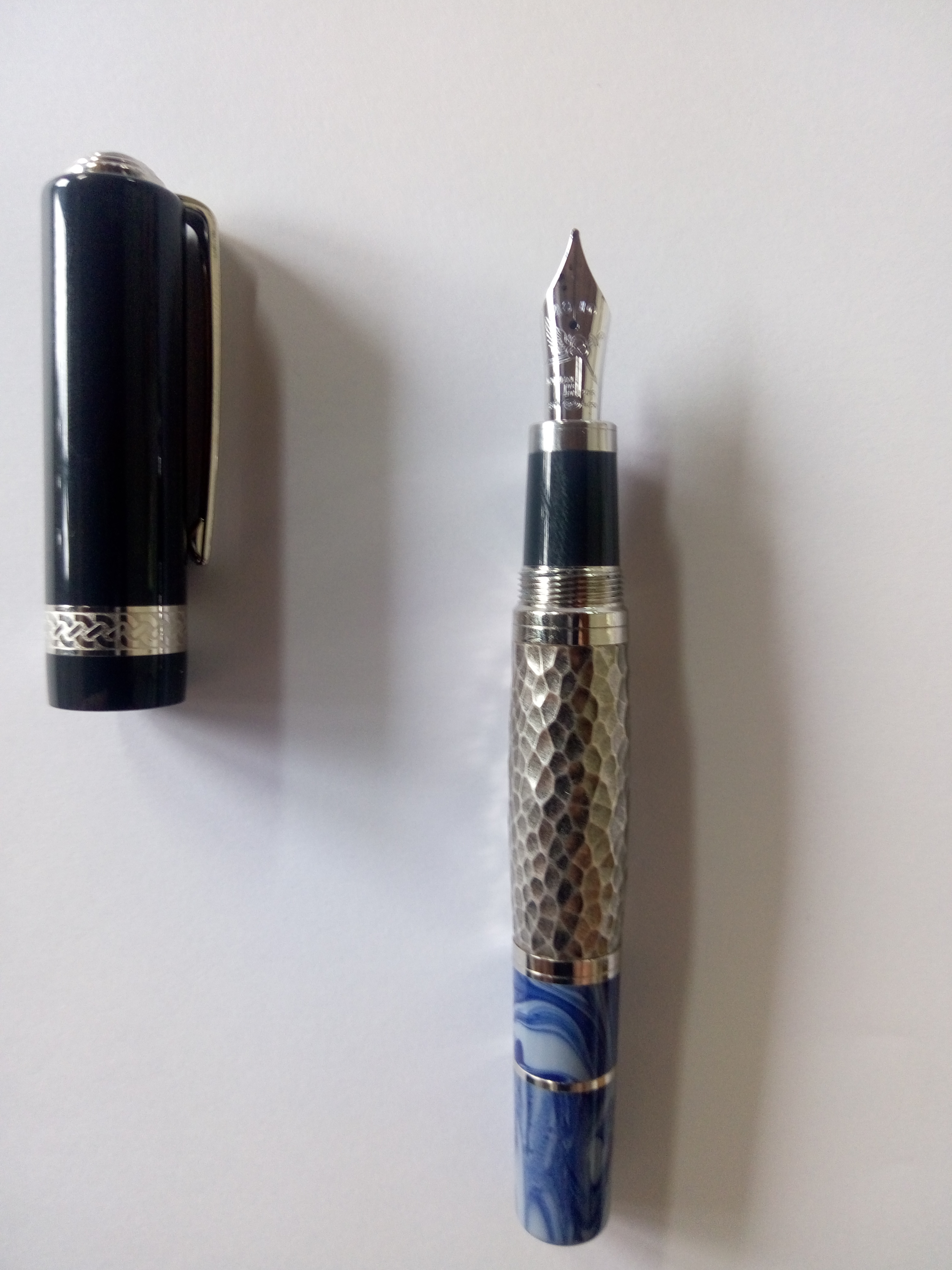 La marrone era spezzata, di netto. L'ho incollata con l'acetone e grazie al microscopio 40X di mia figlia. Quella azzurra l'ho persa su ebay da un utente che poi ho scoperto essere assiduo del forum. Acquisto magnifico, e pennino molto fine e flessibile (forse stub)