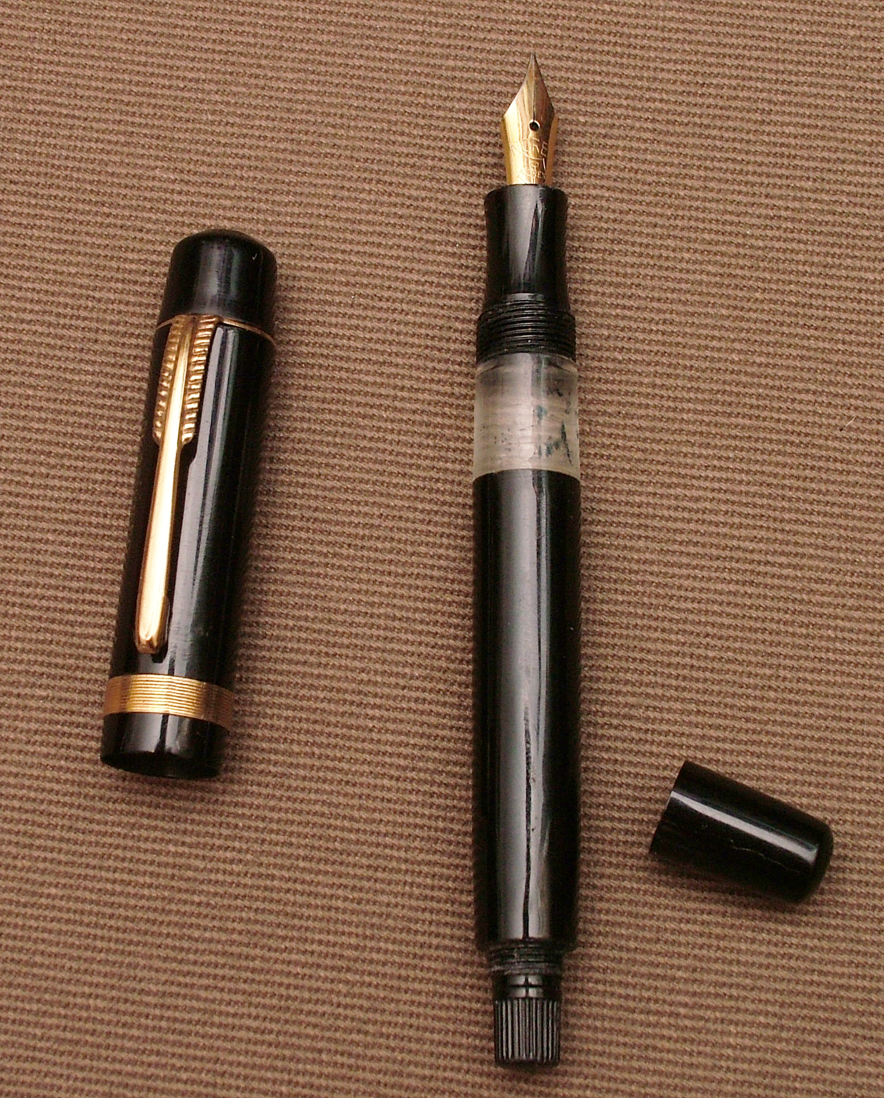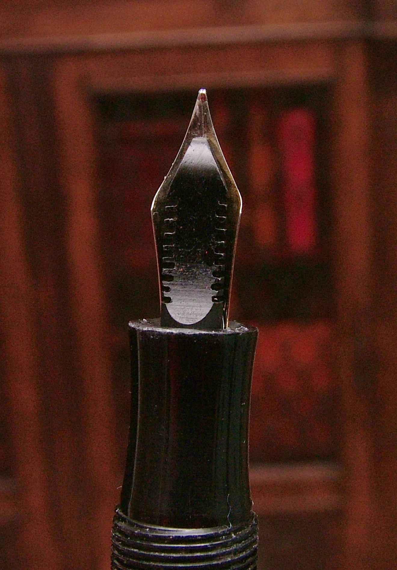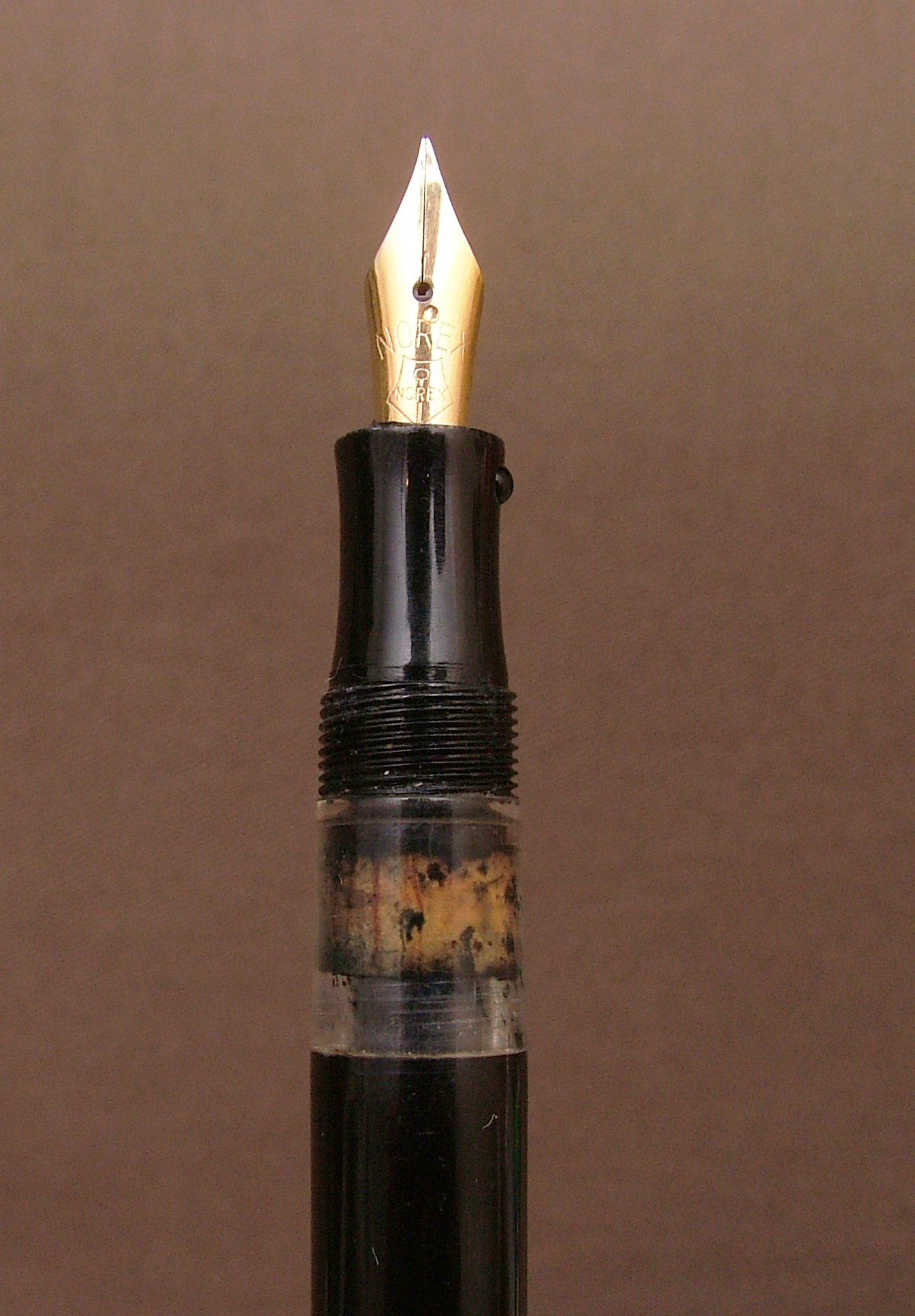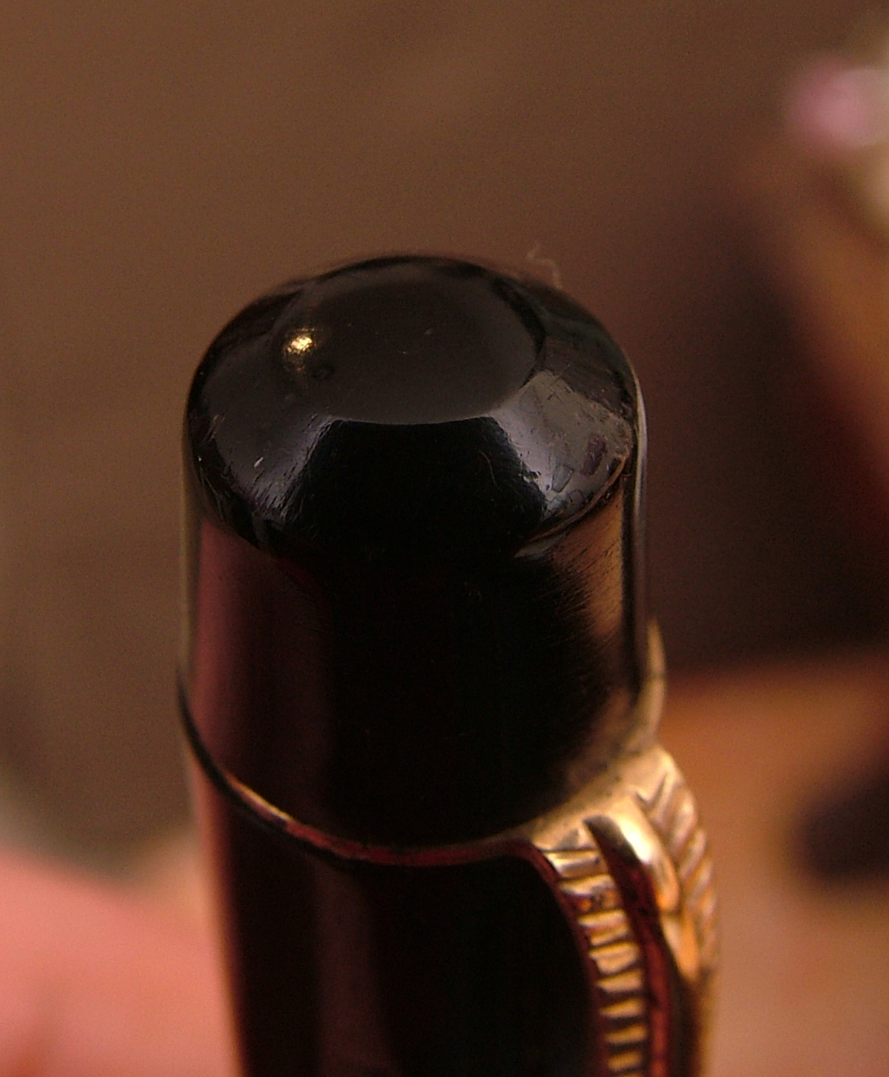 Il restauro è stato abbastanza laborioso, ho riparato le due crepe sul fusto, ho dovuto trovare un fondello che andasse bene e modificare la parte terminale per renderla simile al terminale del cappuccio, rifare il sughero al pistoncino, levare le sbeccature sulla sezione, trovare un pennino che andasse bene, il suo aveva la punta girata ed a dire la verità preferivo uno con punte d'iridio.
