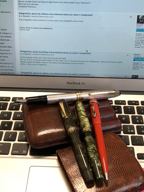 Mi spiego, io scrivo prevalentemente al computer; uso la stilografica per brevi appunti (passaggi logici, estremi da ricordare etc.) su un quaderno accanto al computer.
