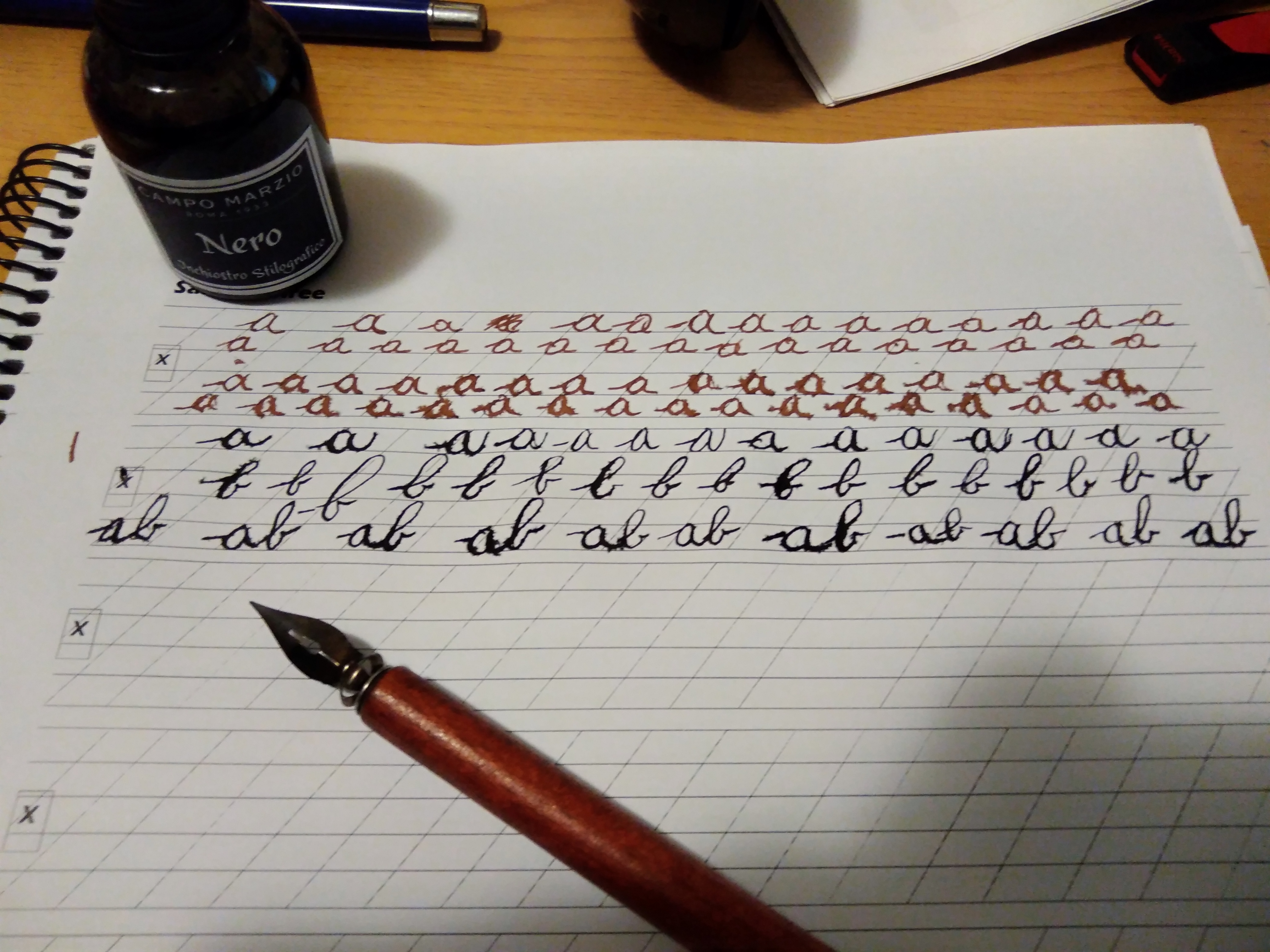 Sono convinto di questo: devo prima di tutto recuperare una manualità nei movimenti con la penna. A 20 anni ho cambiato la postura, a 25 anni ho cambiato l'impugnatura a 33 mi sono applicato per provare a scrivere meglio ora a 35 devo non solo riprendere la manualità ma anche cercare di migliorarla.
