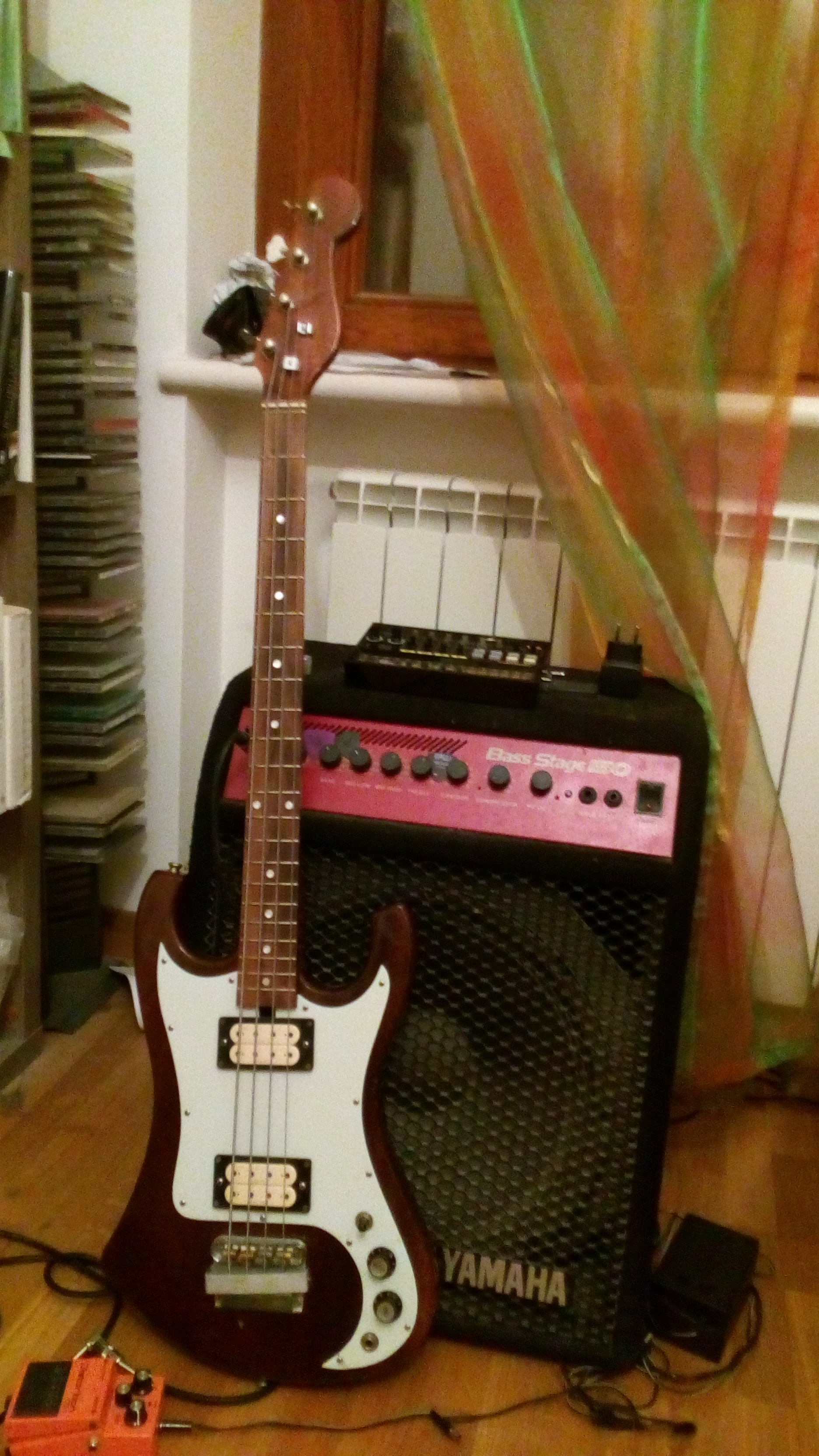 Florinda: viste le stilografiche, prima o poi la mia caduta nel vintage dei bassi elettrici sarebbe stata inevitabile! Un Eko del 1965 circa, pick up Shadow originali, manico e corpo interamente in mogano, tastiera in palissandro. Ha una dinamica e un suono che mi piace molto. Per il resto, ho sempre preferito il Fender Precision o bassi con un solo pick up stile Precision. Ho uno Yamaha del 1990 con pick up Di Marzio. In passato sono passato per Epiphone, Warwick,Bc Rich, pick up attivi, ecc. Dopo 18 anni (di dilettantismo) mi sono stabilizzato anche perché non ho più il gruppo