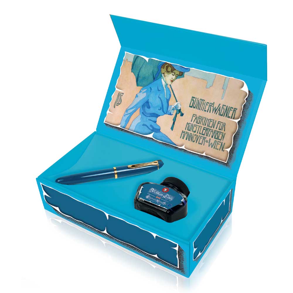 Con sovrano sprezzo del ridicolo si propone un'immagine degli anni Dieci (quando Pelikan vendeva di tutto tranne penne stilografiche, che arrivarono vent'anni dopo) per accompagnare una penna con linea a siluro degli Anni Cinquanta.