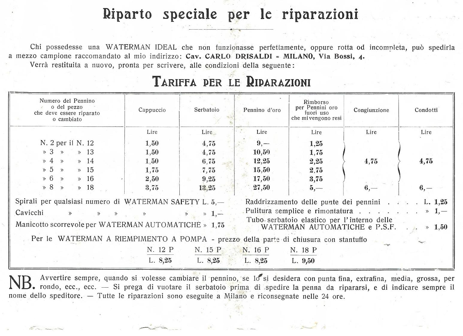 Inserisco le facciate di un foglietto trovato in una scatola Waterman (forse l'avevo già inviato in passato ma come foto e non come scansione)