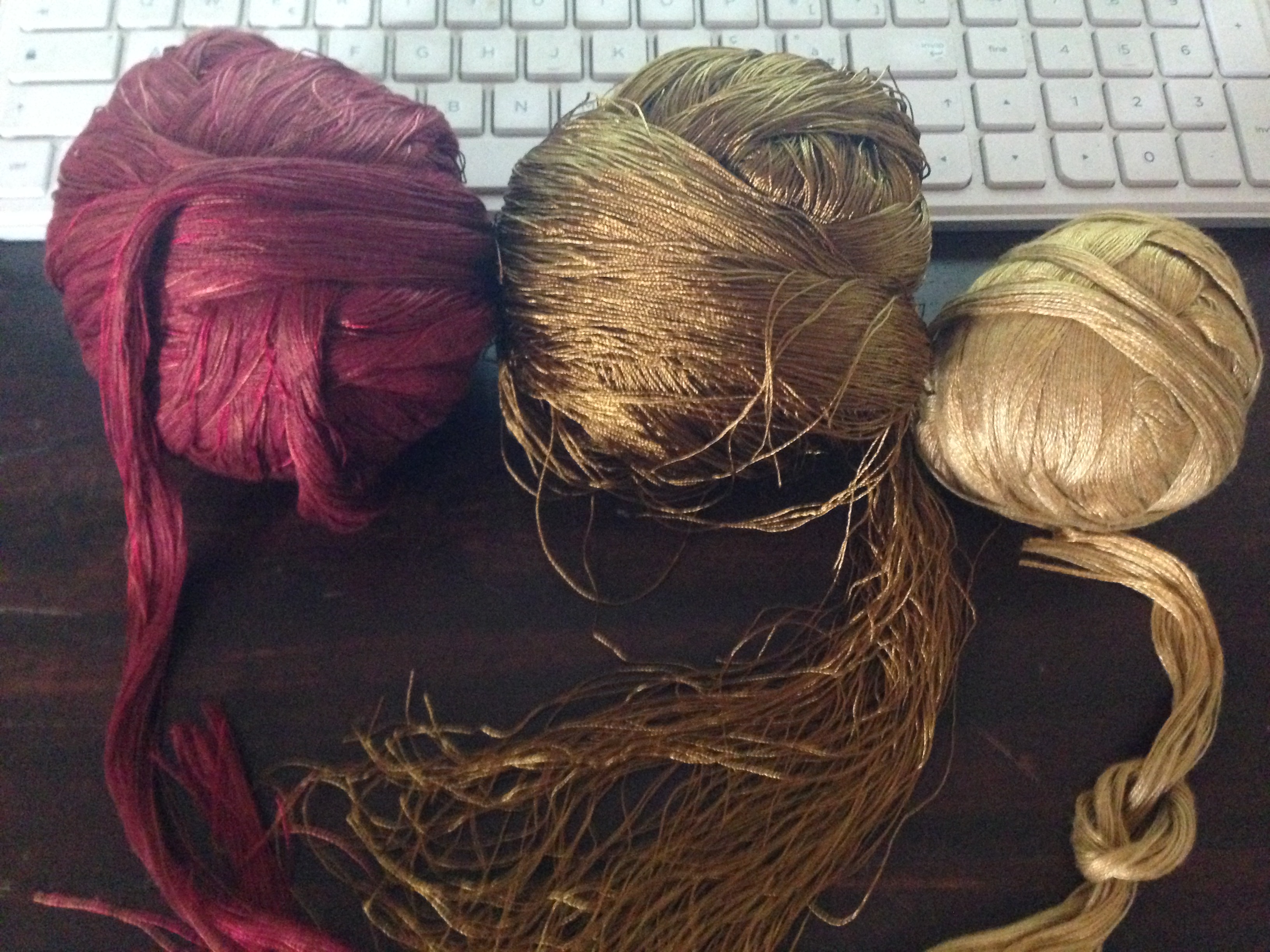 vecchi gomitoli di seta ritrovati in un mercatino.