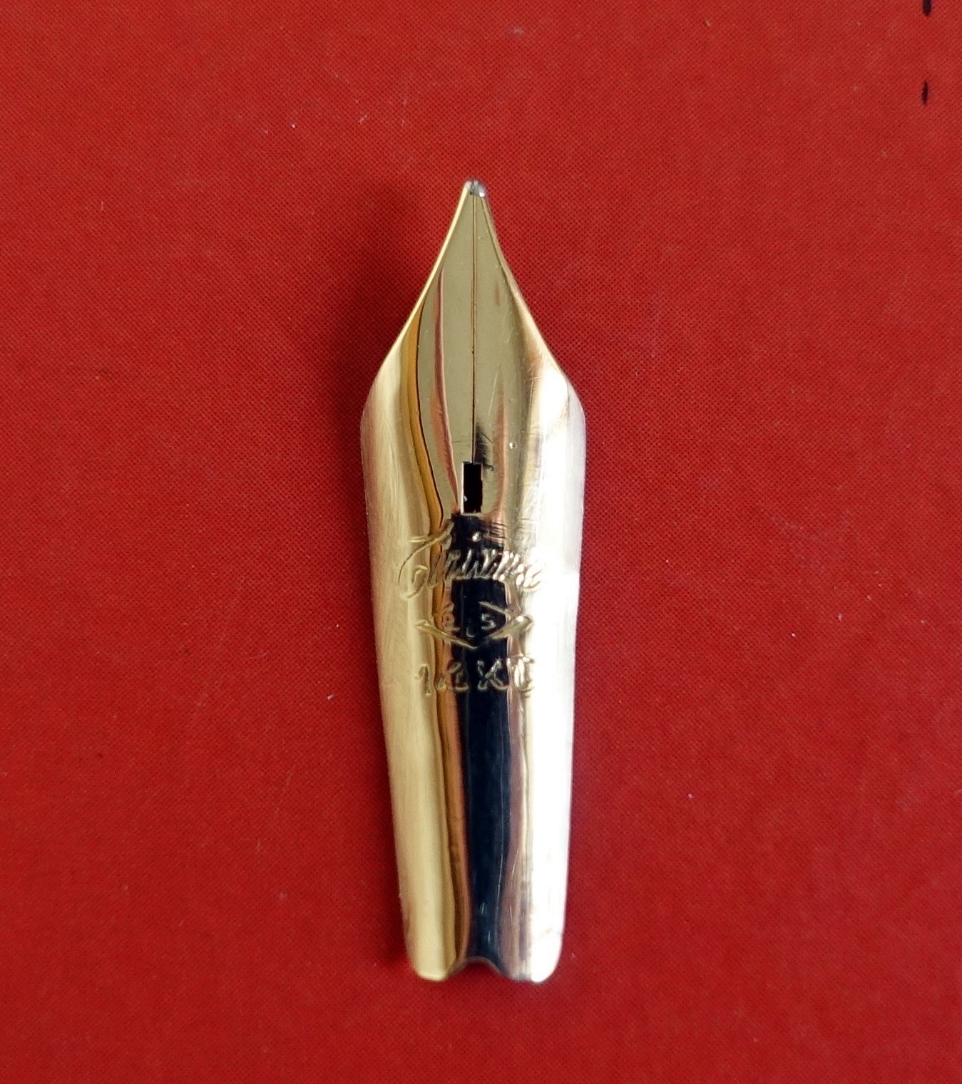 Ho guardato con una lente, confermo il 14 KT, 585 può essere, anche il rombo è tipico dell'oro, molto probabilmente il pennino è talmente sottile che la bulinatura è poco impressa per evitare di bucarlo :)