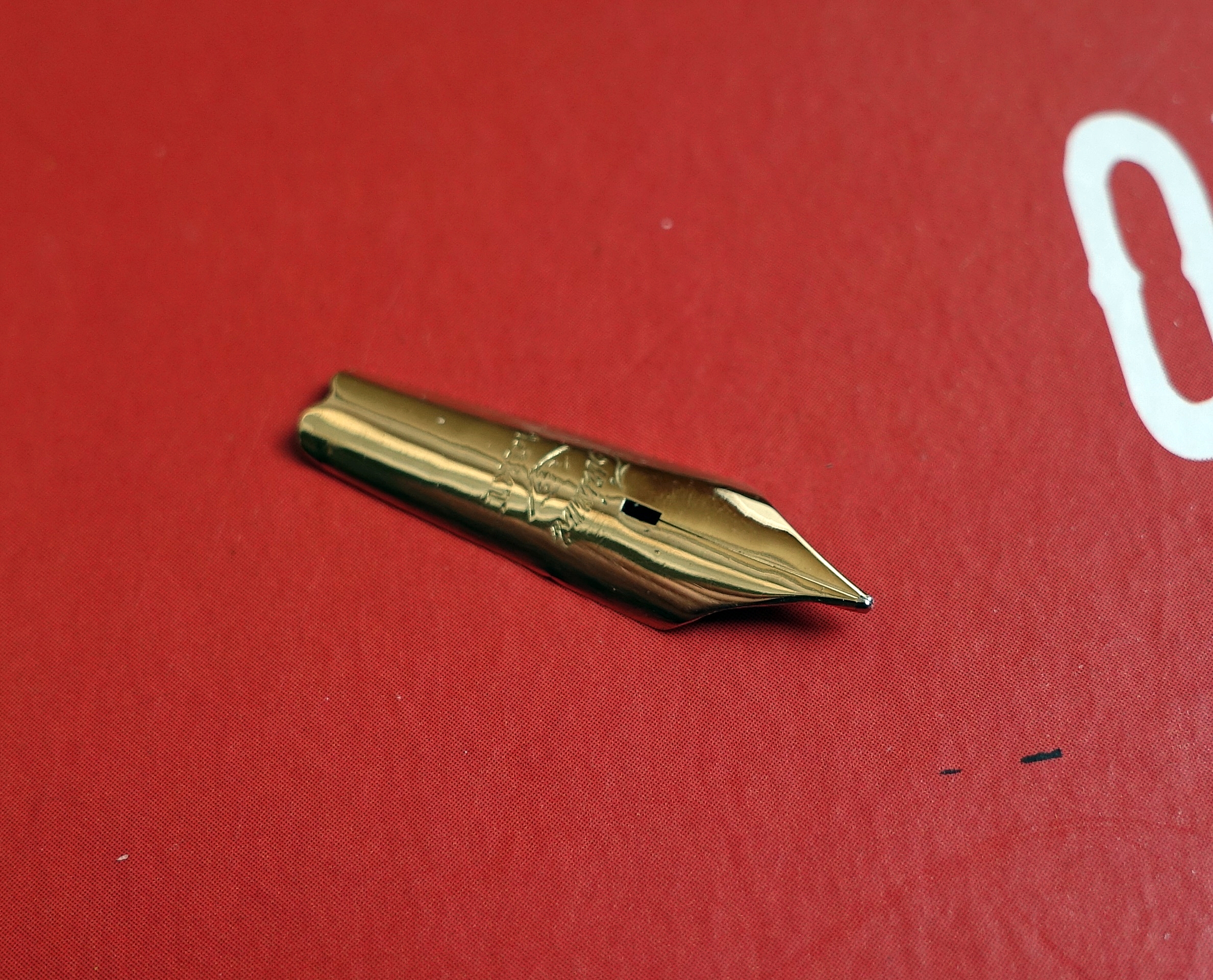Qualcuno mi può aiutare a decifrare o conosce questo pennino, materiale, periodo di costruzione, c'è scritto 2,5 e 1,1 KT, è molto sottile e parecchio flessibile. :)