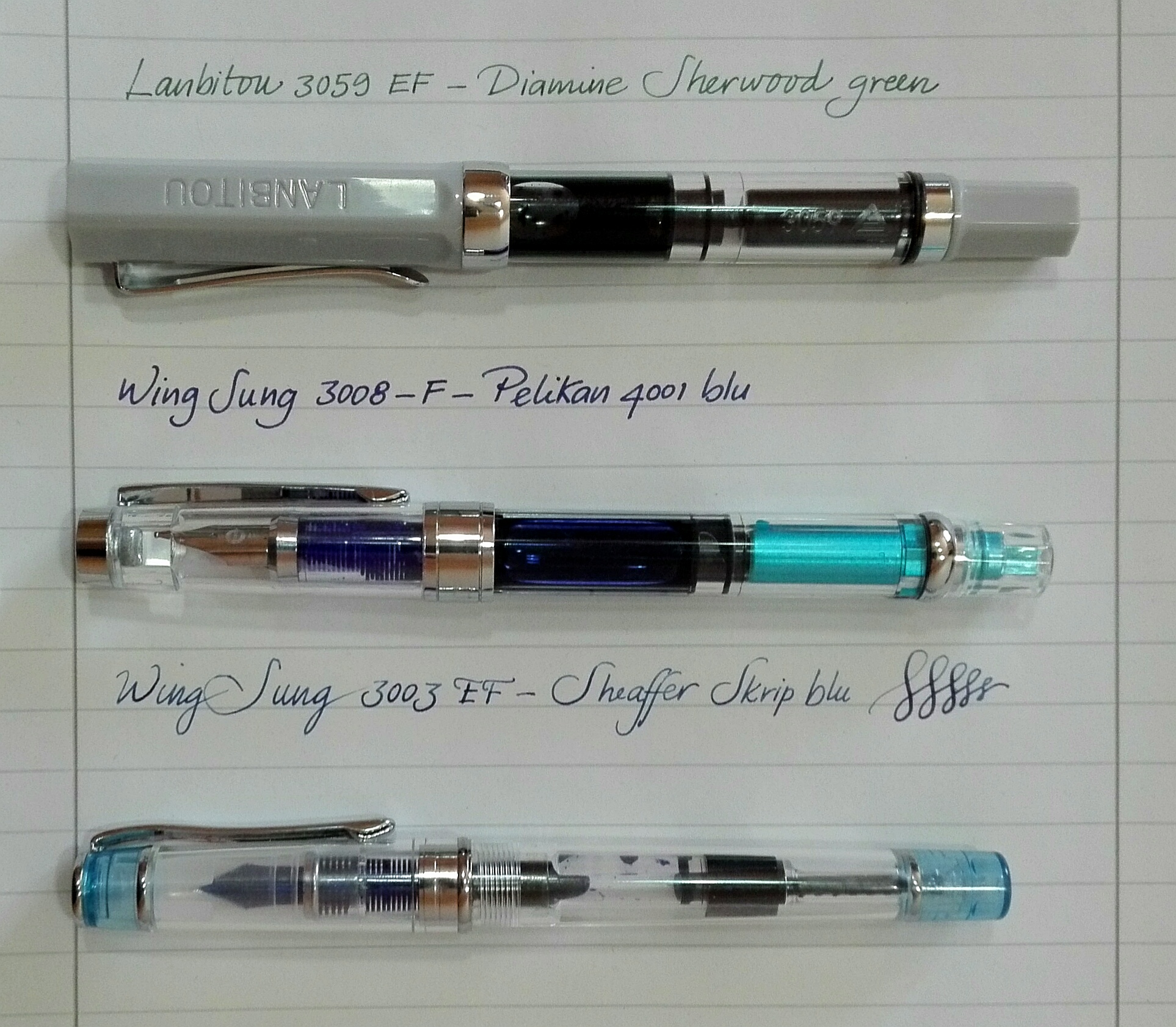 Ho un set di 3059 a stantuffo appena arrivate, che scrivono in modo fantastico. Ho preso il pennino tratto fine, carenato. Anche sal lato secco è molto scorrevole, devo dire un altra piacevolissima sorpresa. È finita l'era delle cinesi solo lacca e converter.