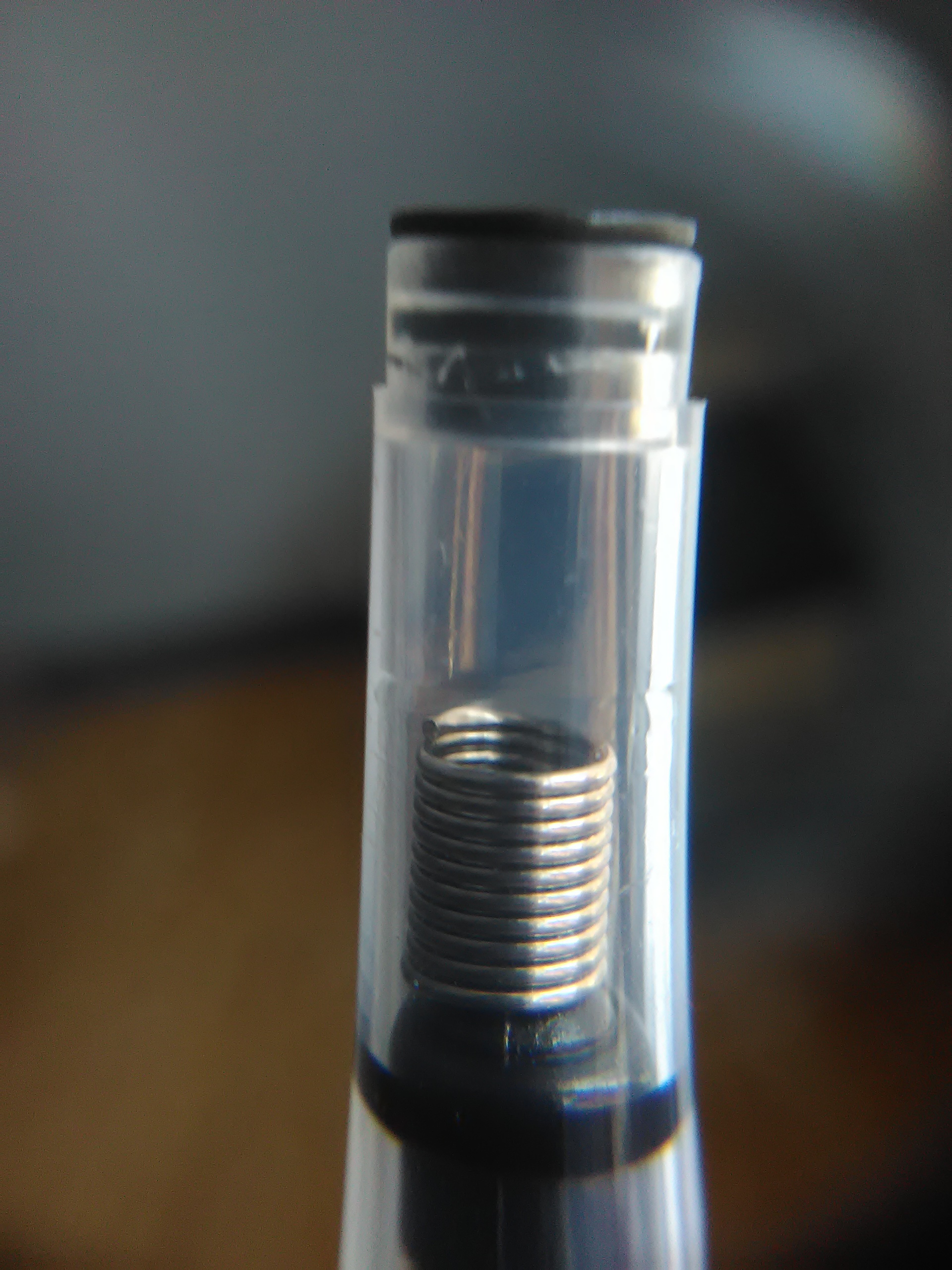 Non è una molla: è un pesetto che dovrebbe aiutare lo scorrimento dell'inchiostro. Mi sembra che una soluzione simile si trovi anche nei converter Montegrappa.
