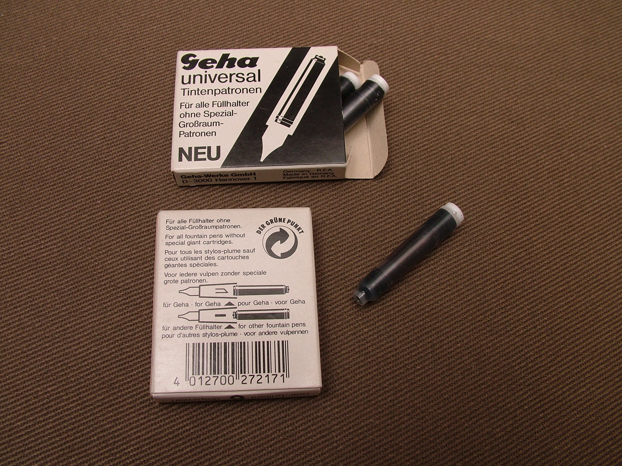 La Geha usa cartucce propietarie, che da un lato hanno l'attacco Geha e dall'altro Pelikan.