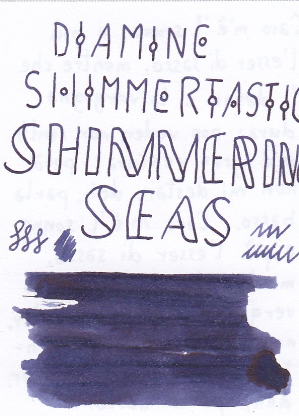 Shimmertastic Shimmering Seas è un bel colore, con o senza gli sbrilluccichini, ma fa fatica a scorrere con questi ultimi. Se lo usi senza agitare il calamaio è un bel blu scuro, un po' secco solo.