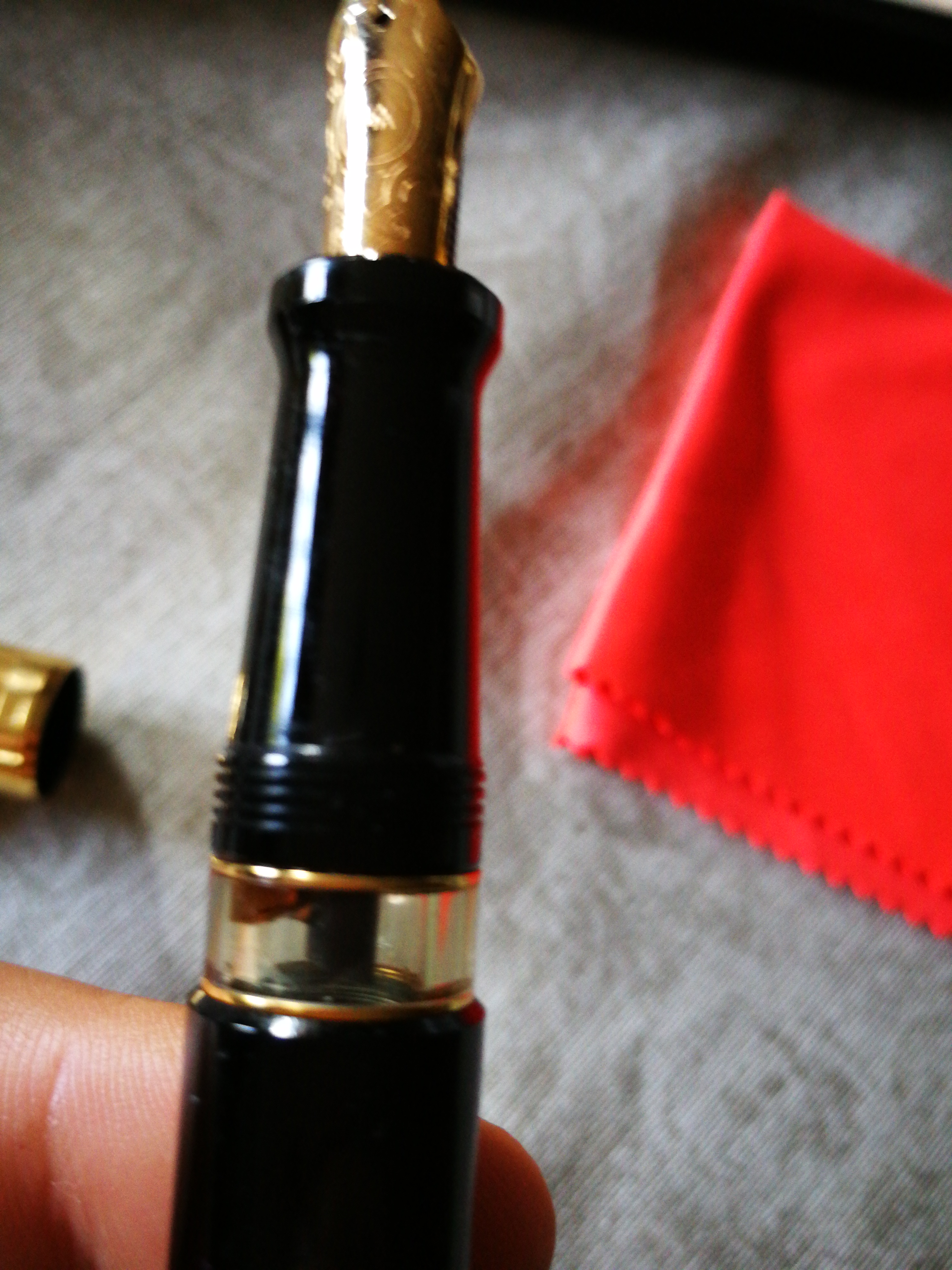 Ho di recente acquistato da un privato questo bell'esemplare che con un Diamine Chocolate Brown mi ha donato felici sessioni di scrittura. Ora volevo cambiare inchiostro, per cui ho deciso di fare dei lavaggi. Ho appurato che quello che viene detto da Pen ahabit sull'autore nebulosa si applica anche in questo caso. Quando si cerca di pulirla resta sempre un po' d'inchiostro nel pistone come riserva in caso si vada ad esaurire l'inchiostro.