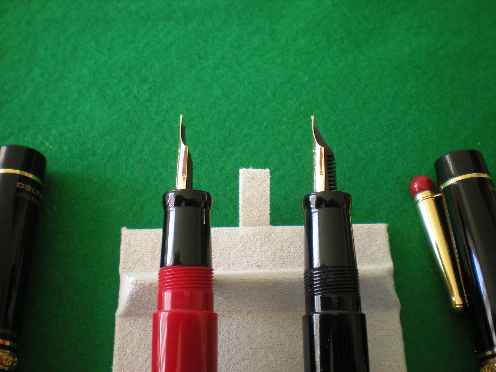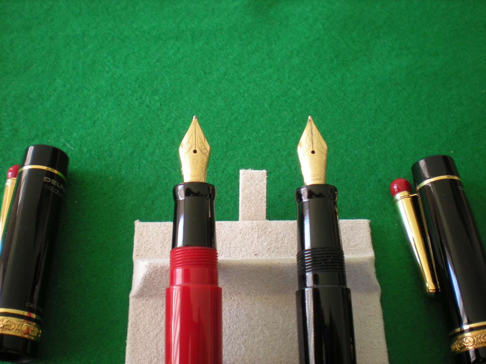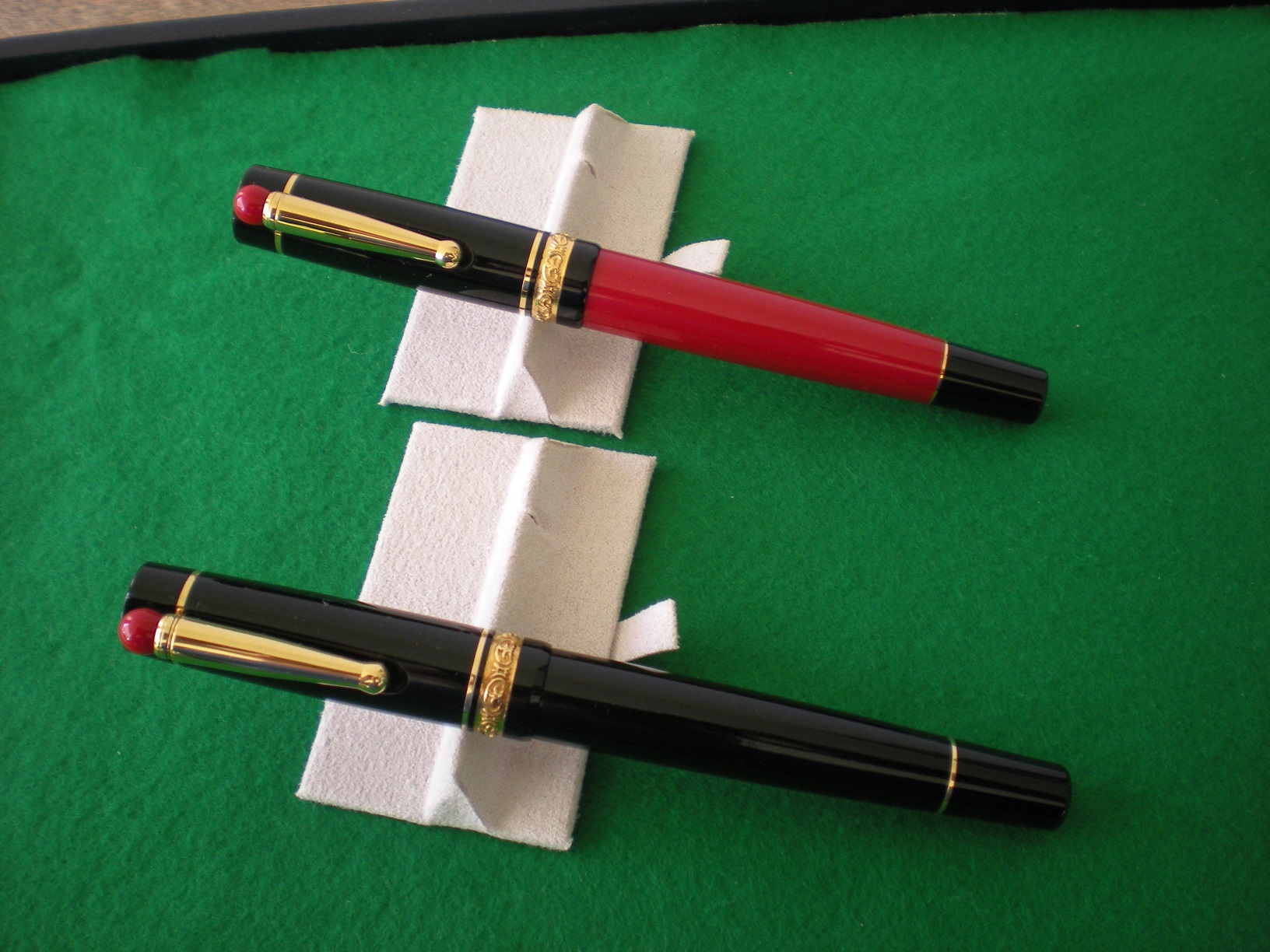 salve, riprendo questo argomento un po' datato per farvi notare alcuni particolari di questa penna. Possiedo due esemplari,uno con il fusto di colore rosso e uno con il fusto di colore nero.