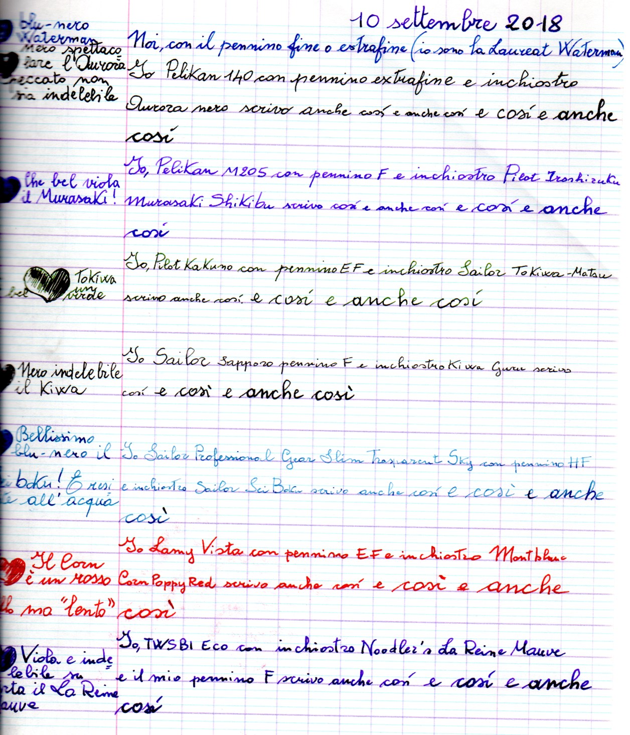 demogorgone ha scritto: sabato 8 settembre 2018, 9:49Caro Lamy, la mia attrezzatura quotidiana per la matematica e' la seguente: pilot metropolitan (pennino F, la devi ordinare online perche' la MR in Italia ha il pennino medio), sailor high ace neo (pennino F) e, se si trova ancora, pilot penmanship (EF) per le formule piu' piccole e gli indici. Con queste io scrivo senza problemi anche cose molto minute o formule lunghissime. Visto il basso budget non e' un dramma se me le rubano, le perdo o le rovino. Se cerchi cose piu' di valore, altri sapranno consigliarti