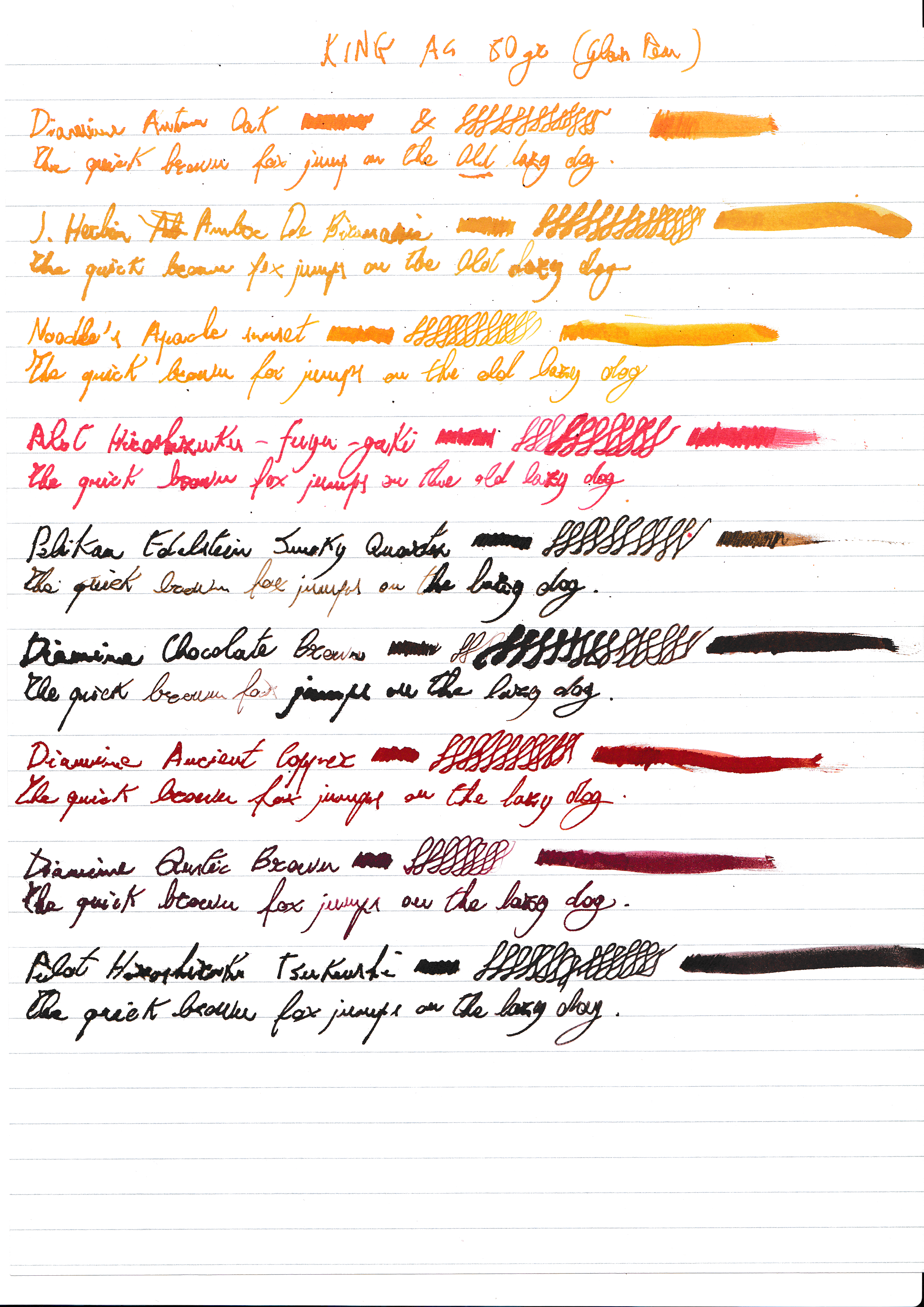 Per semplificare, allego lista degli inchiostri che ho con prove di scrittura in penna di vetro.
