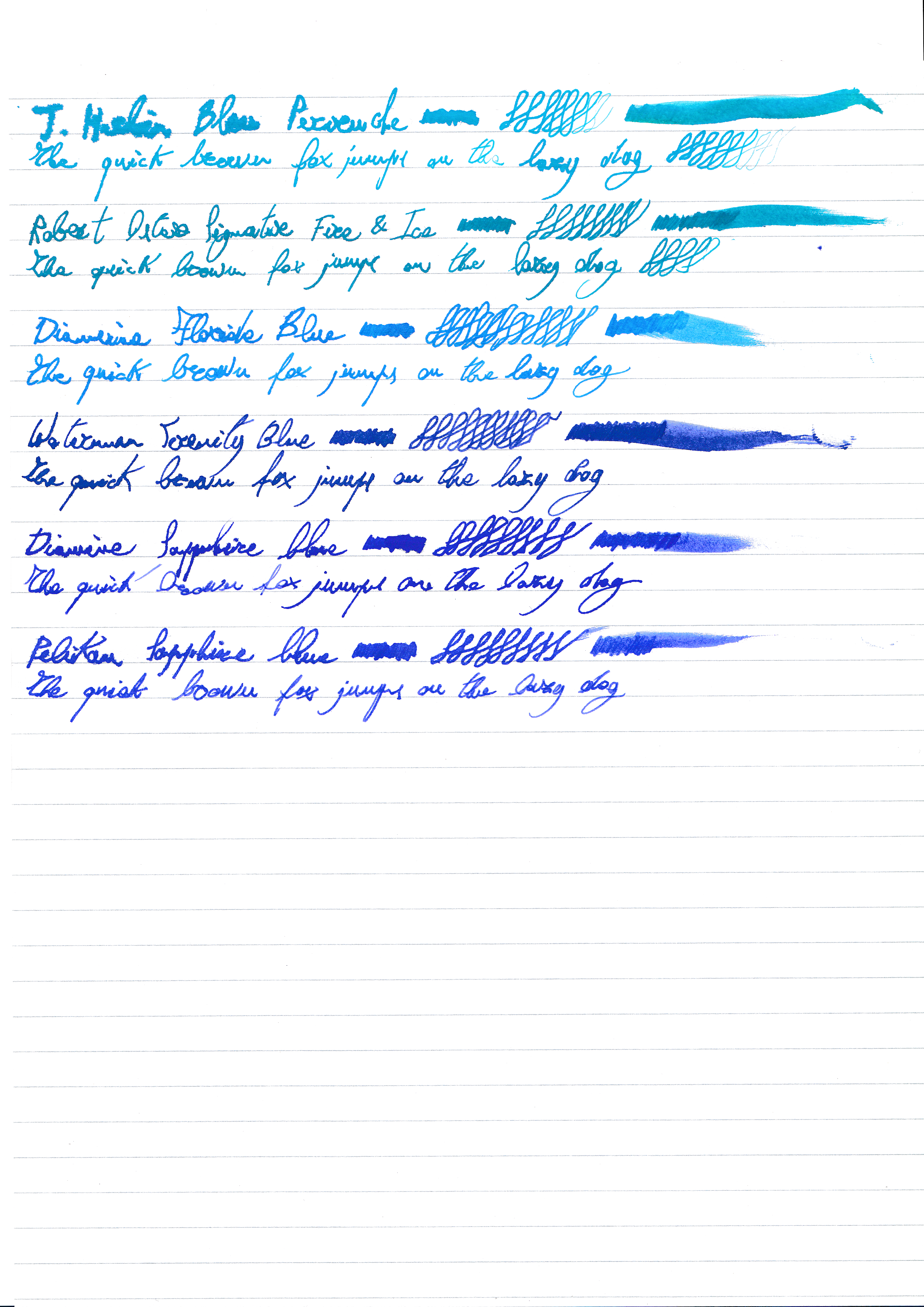Dei colori proposti conosco solo il pervinca ma personalmente starei su qualcosa di meno acceso tipo il Diamine Steel Blue.