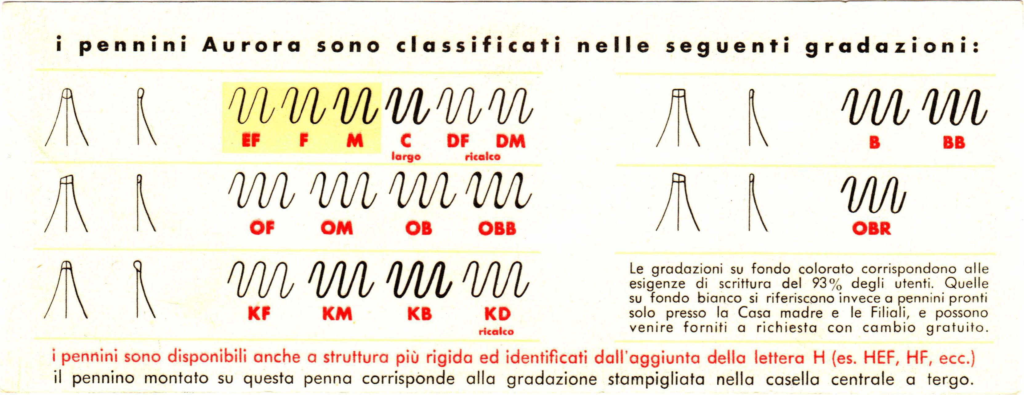 Quanto ai pennini, sulle 88 Aurora ne montava praticamente di ogni misura e per ogni esigenza; immagino lo stesso (forse con una scelta leggermente inferiore) sulle Duocart e sulle 888.
