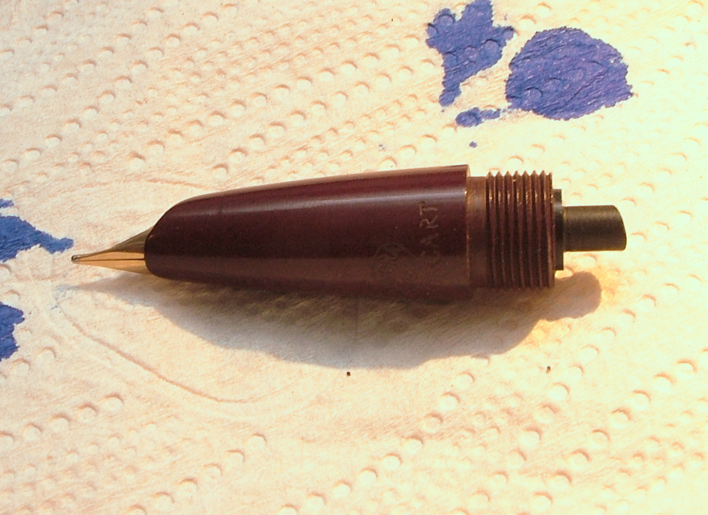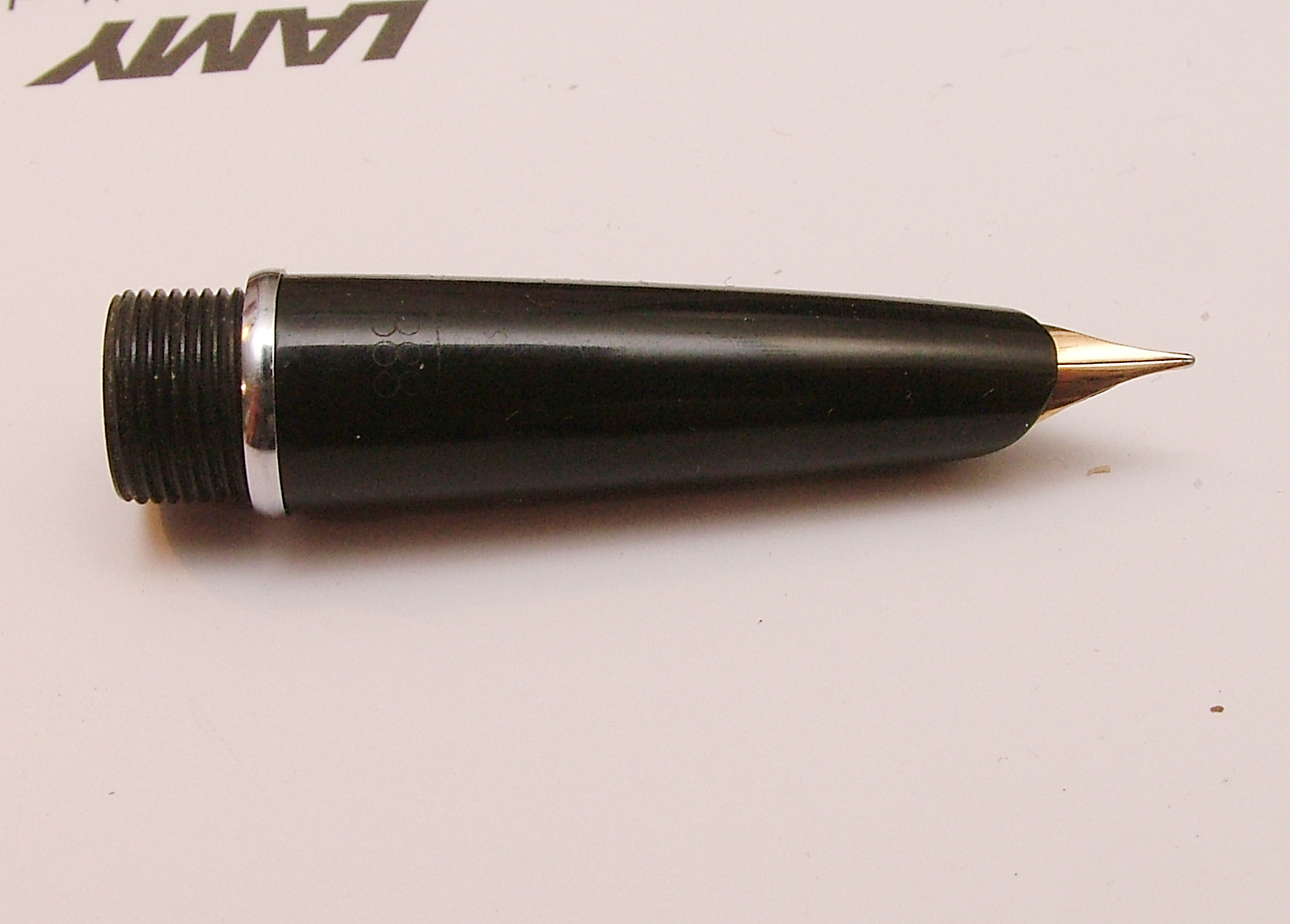 Il pennino potrebbe anche essere marchiato sulla parte non visibile, questo non te lo saprei dire (sono un convinto sostenitore della tesi che finché una penna funziona bene non la si smonta, e le mie, fortunatamente, funzionano). Sicuramente qualcuno che l'abbia smontata ti potrebbe rispondere al volo.