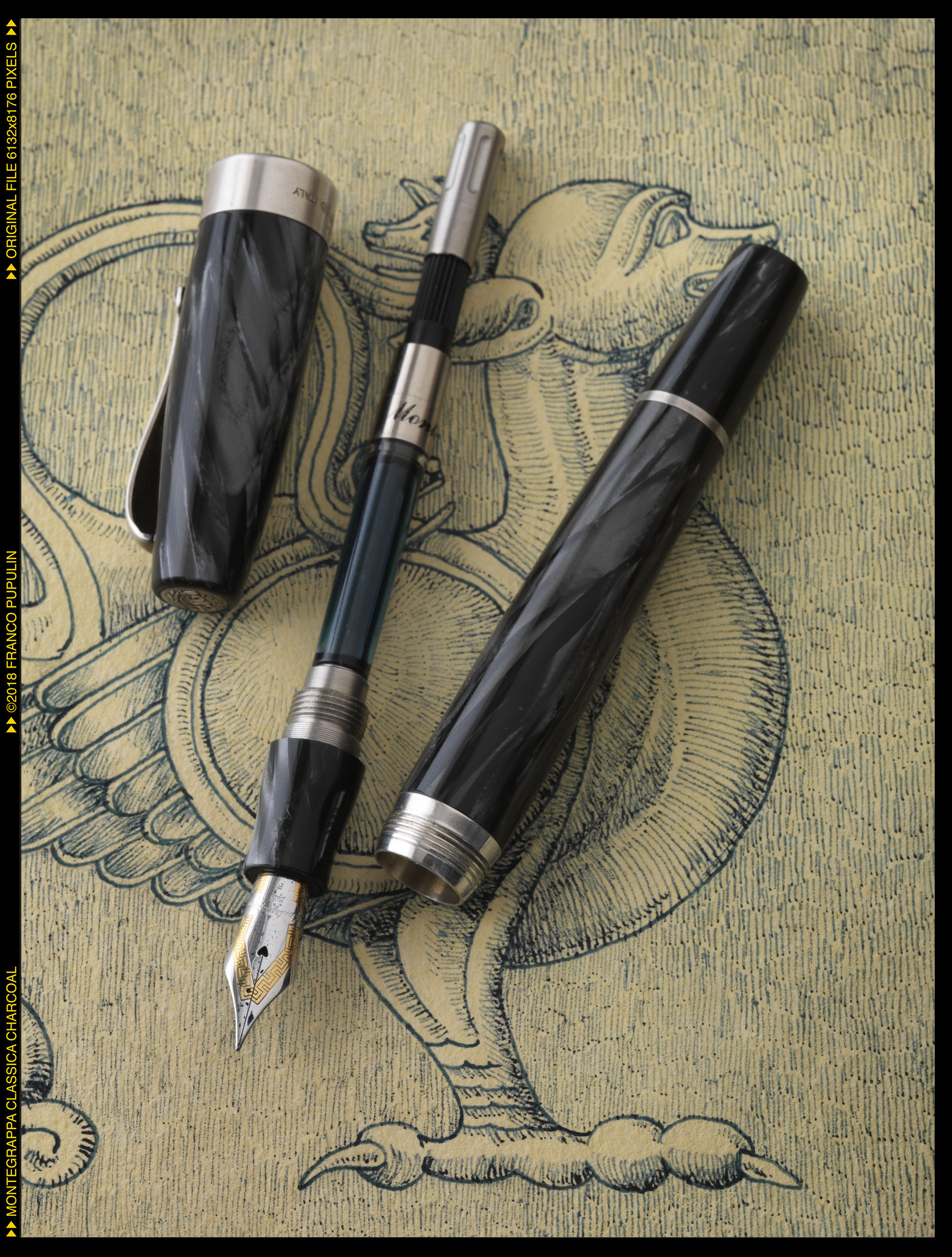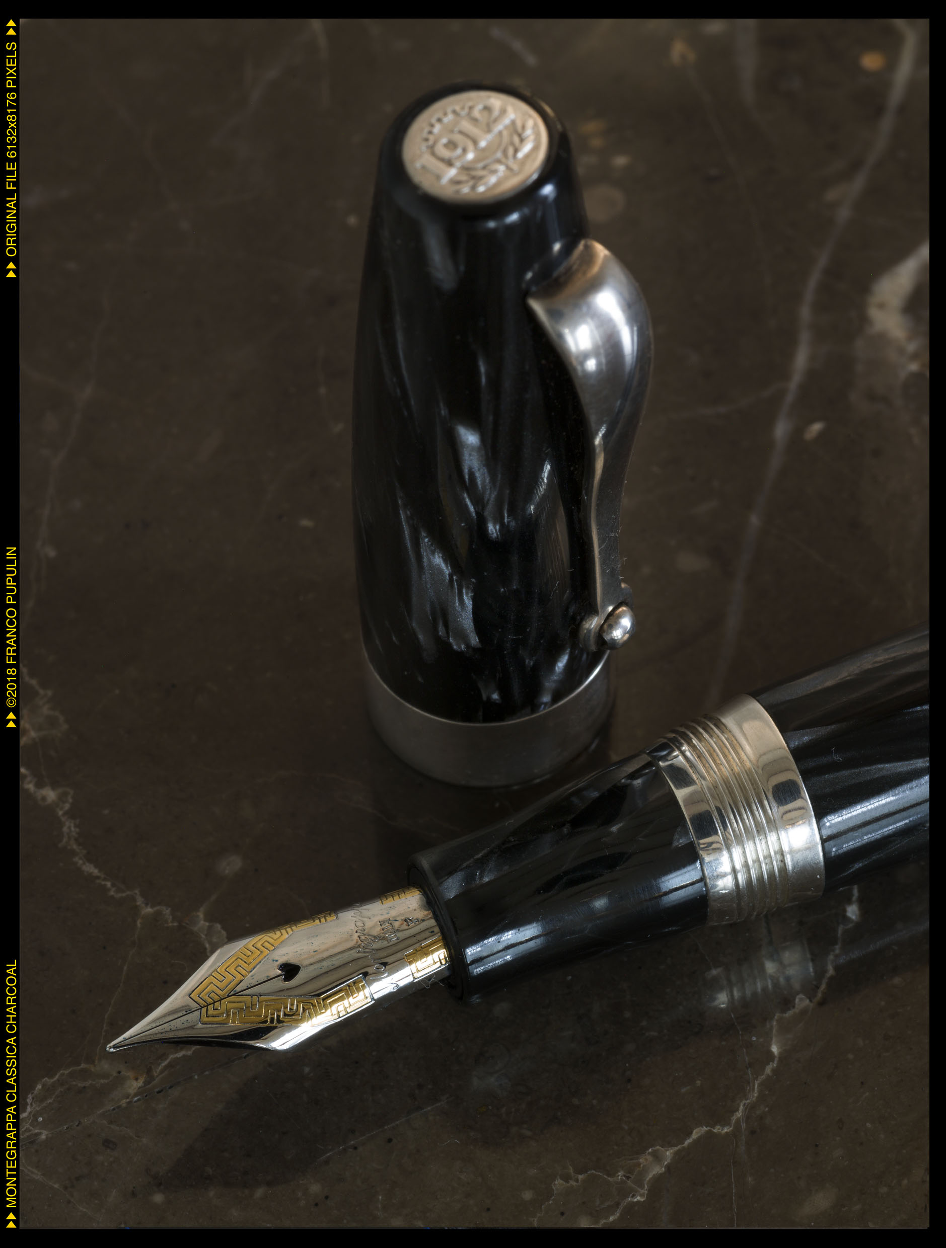 All'inizio di quest'anno, ho avuto la fortuna di trovare una classica penna stilografica Montegrappa, nella splendida celluloide color carbone, ad un prezzo così buono che non ho potuto lasciarlo passare. Sono sempre stato affascinato dalla Classica, genitrice fondatrice di un'intera discendenza nella produzione di Montegrappa, che comprende alcune tra le penne che apprezzo di più della maison di Bassano del Grappa. Ne parlerò più in dettaglio nell'ultima parte di questa discussione, ma nel frattempo lasciate che vi presenti la mia Classica e un lavoro che ho fatto con questa penna.