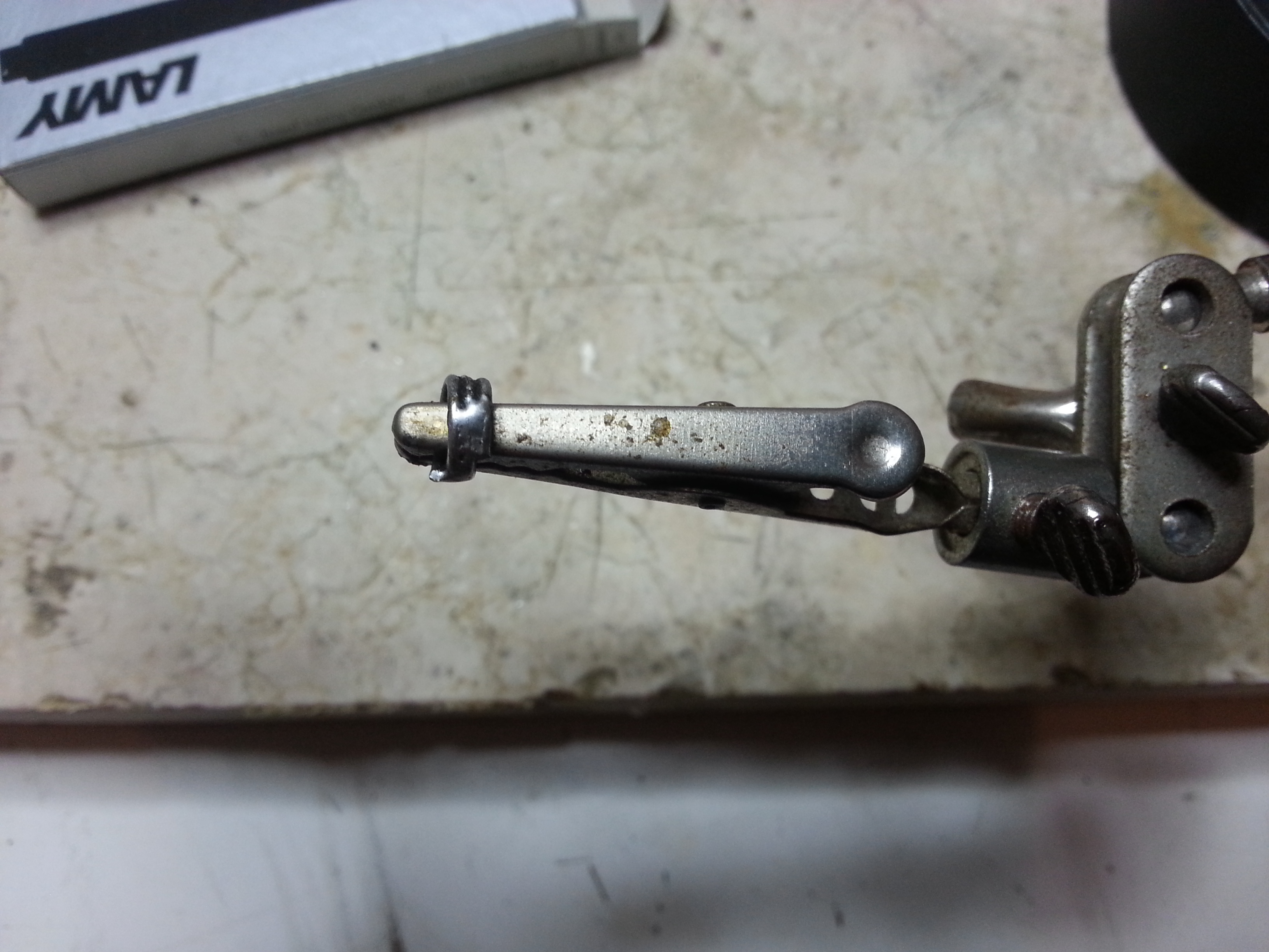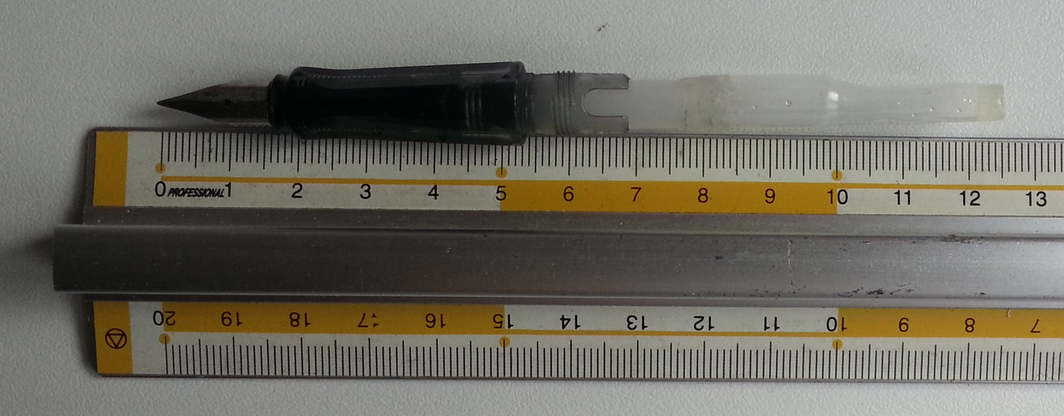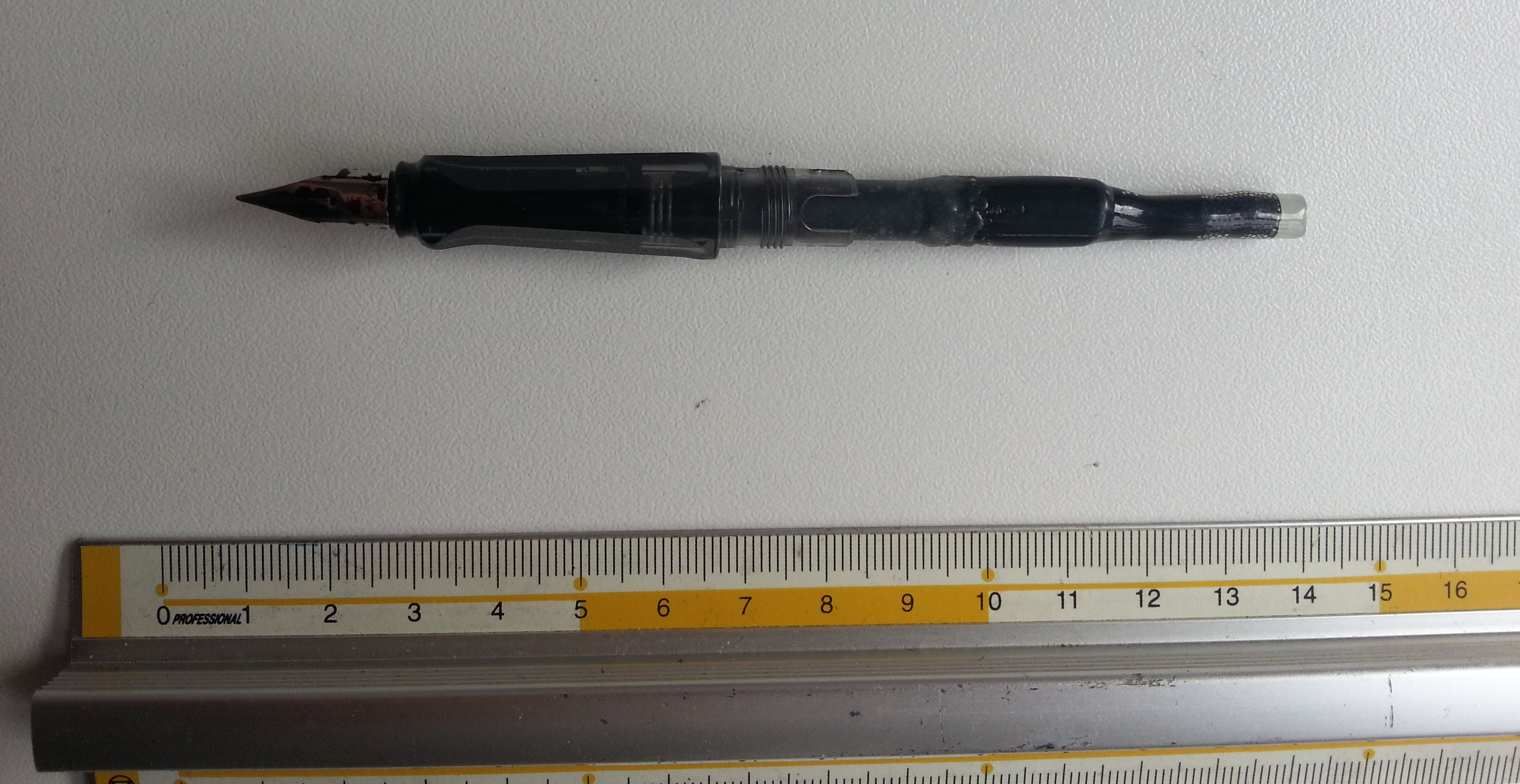 Il converter è costituito da due metà, e per realizzarlo sono partito da una cartuccia Lamy originale, che ho tagliato per una lunghezza di circa 3.8mm a partire dall'innesto, come visibile in questa foto: