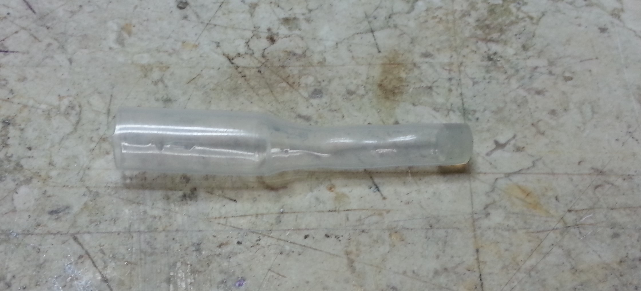 Per incollare le due parti ho ricoperto di colla termica gli ultimi 3mm della prima metà per poi immediatamente innestare la seconda