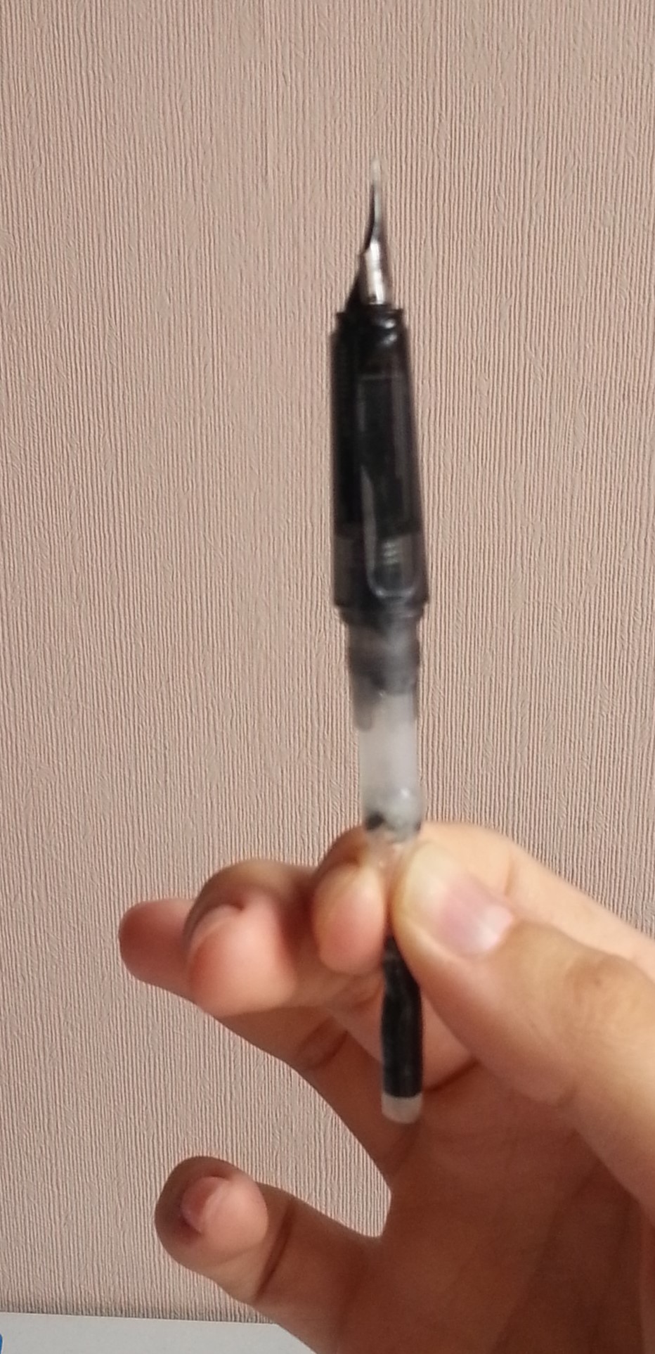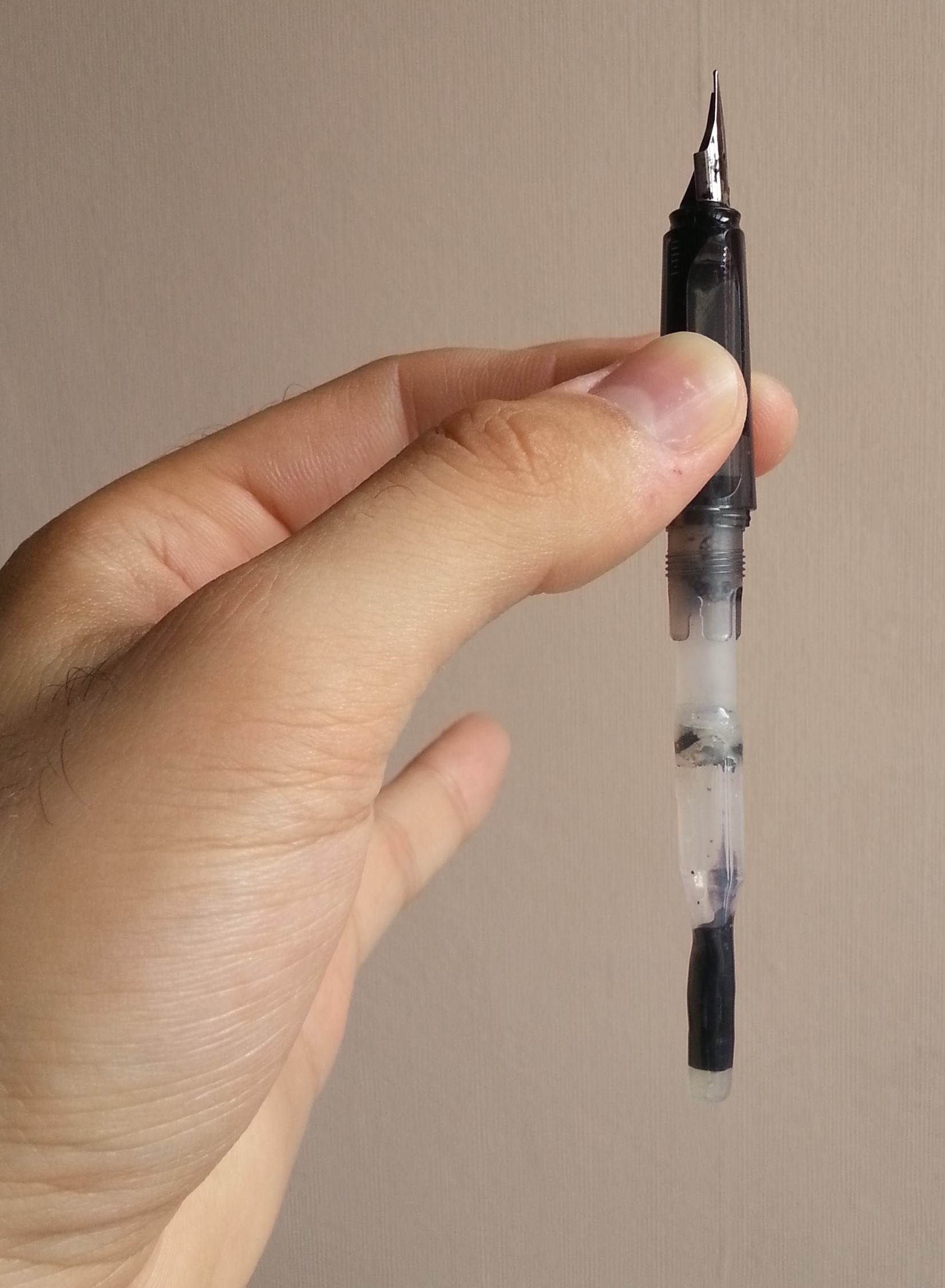 Dopo aver innestato il converter nella penna, è sufficiente porla sottosopra, come in questa figura, e premerne lentamente la