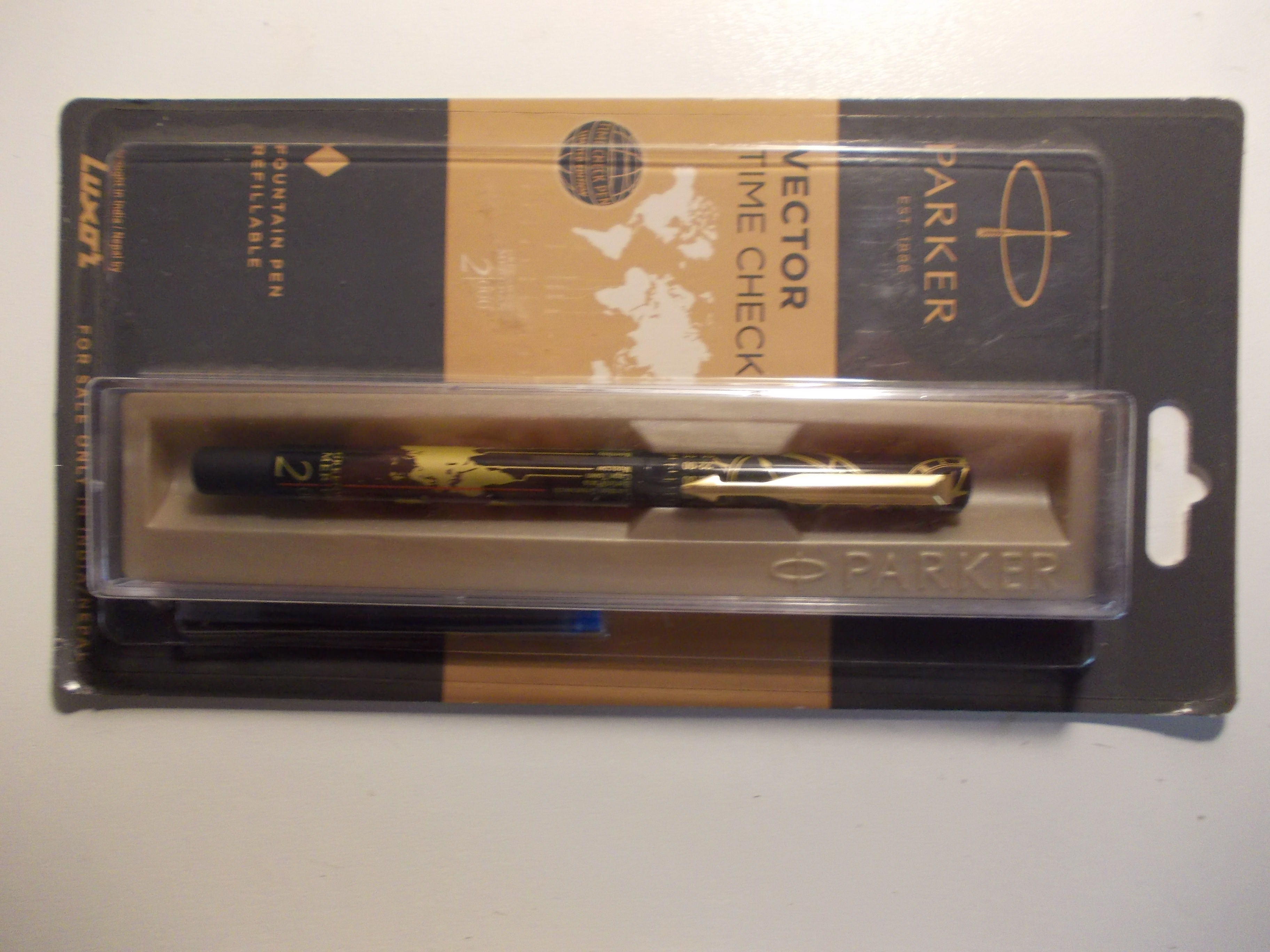 Venduta in dollari l'ho acquista per 9 euro, compresa la spedizione. Ora costa un po' di meno, a causa della leggera rivalutazione dell'euro rispetto al dollaro. E' allegata una cartuccia e dentro la penna dovrebbe esserci un converter (speriamo). Sulla confezione c'è scritto: "brought in India/Nepal by Luxor","Manufactured by: Luxor Writimg Instruments ...", "For sale only in India/Nepal" (Ohi, ohi, sono fuorilegge).