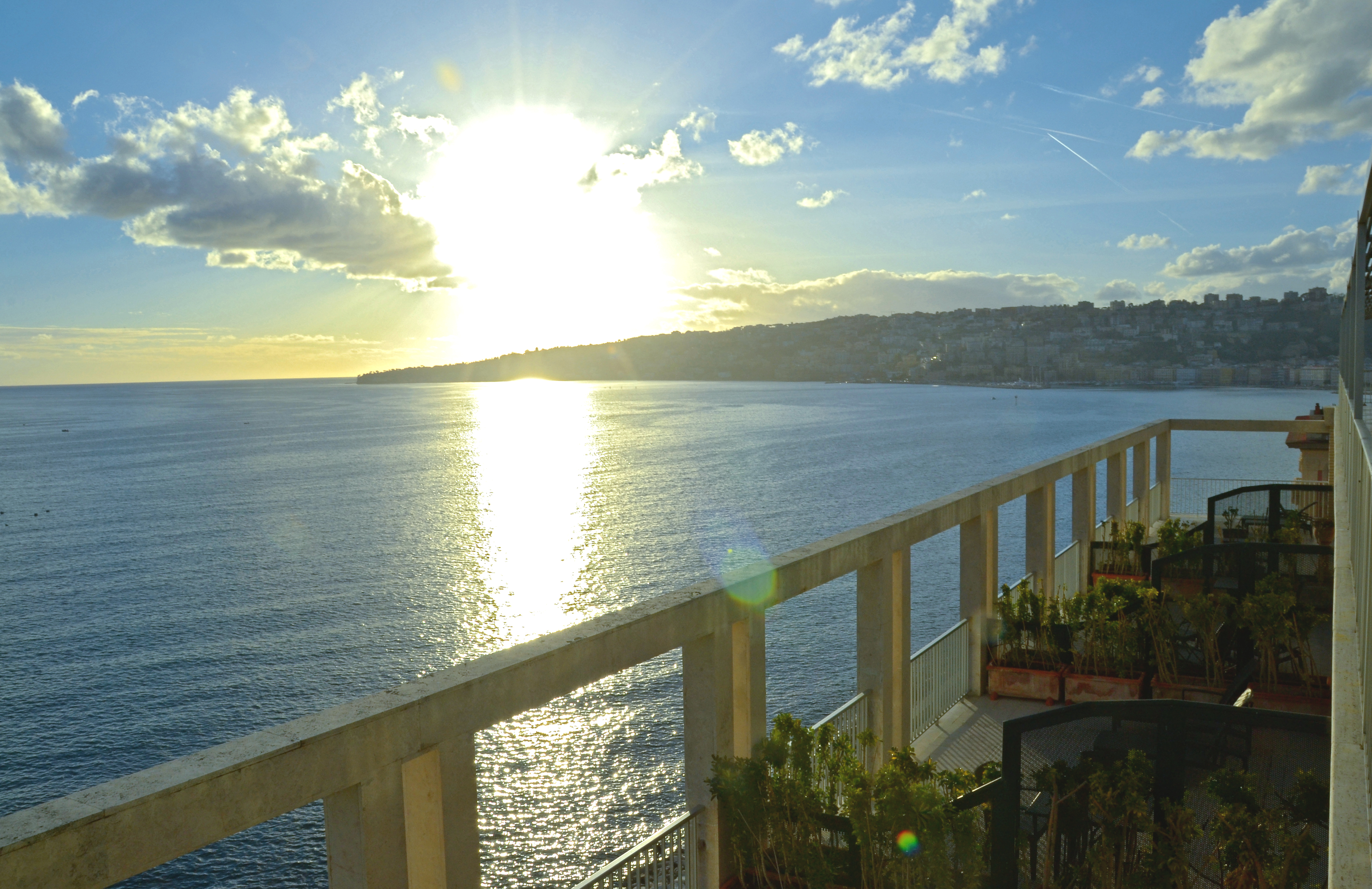 Dalla balconata della sala si ammirava il Golfo di Napoli, Borgo marinaro, Castel dell' Ovo e sulla destra la collina di Posillipo.