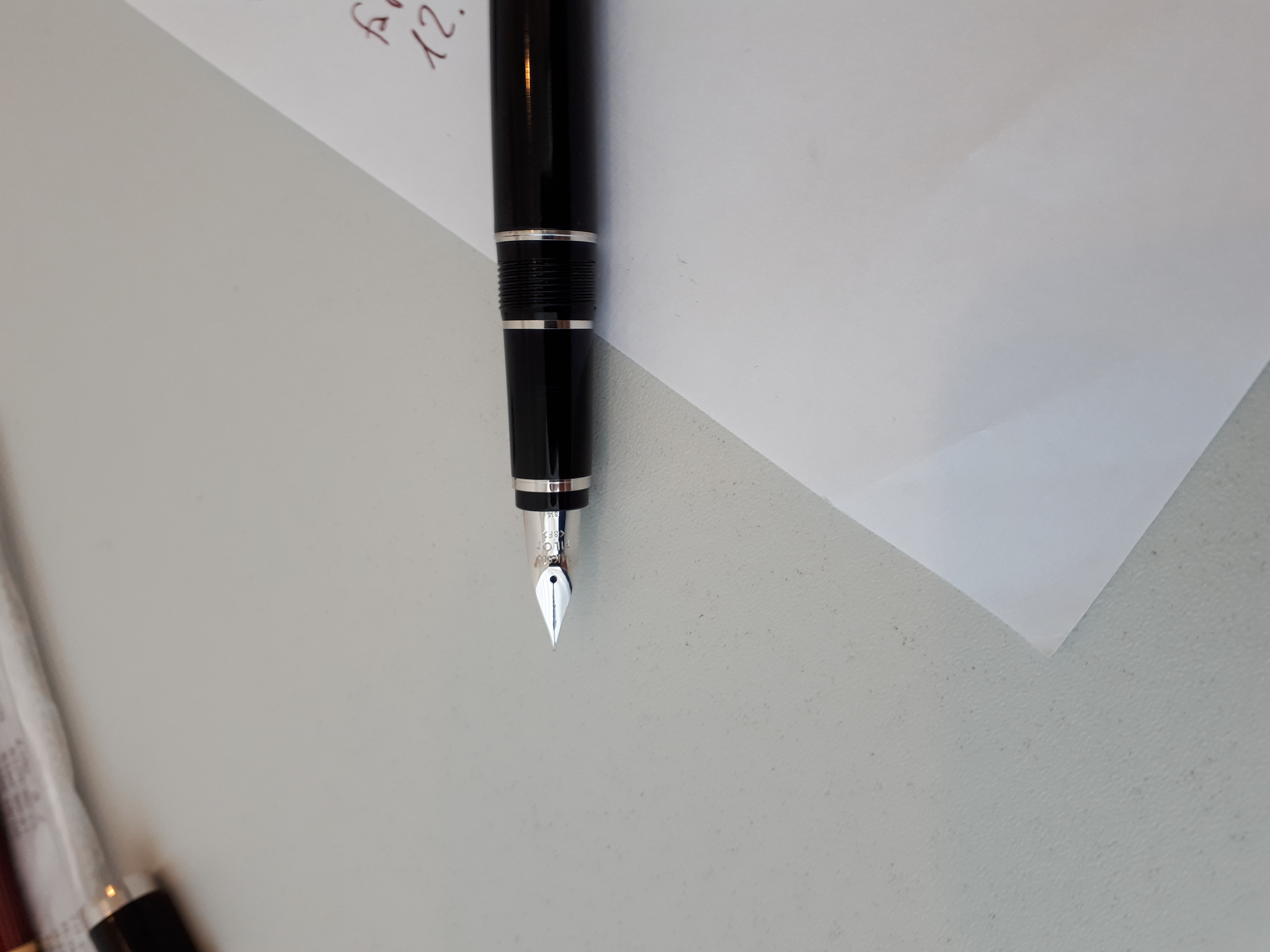 Nella foto che allego potete vedere come si presenta il pennino SF della mia Pilot Falcon, in modo regolare. Lo pulisco, e dopo poco è di nuovo sporco. Utilizzo per questa penna la cartuccia proprietaria , colore nero.