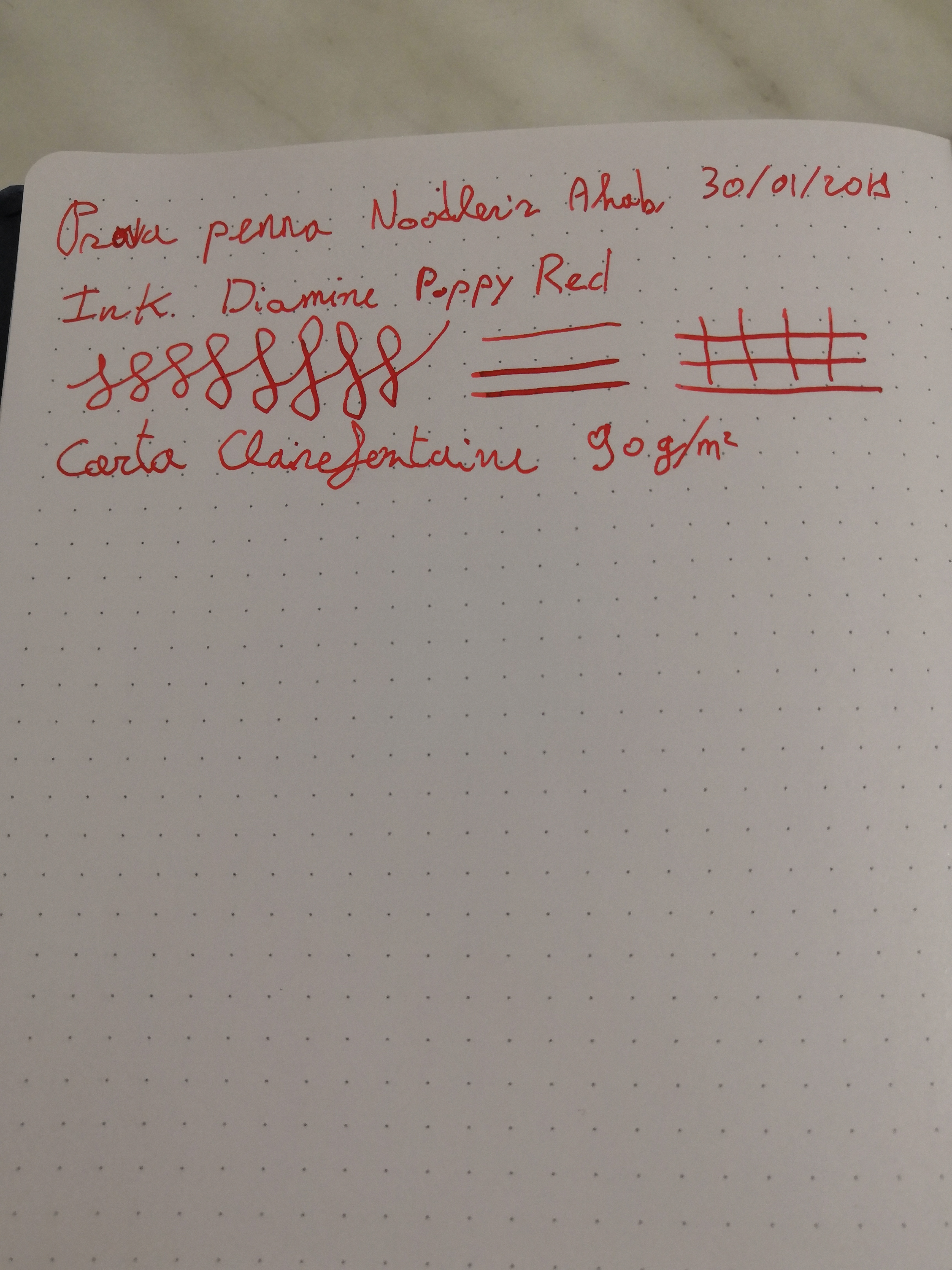 Salve a tutti. Volevo rendervi partecipi dell'ultimo acquisto, un inchiostro rosso brillante. Cercavo un rosso non scuro, che risaltasse sulla pagina, e mi sono imbattuto in questo inchiostro della Diamine. Trovo che l'accostamento al papavero (poppy in inglese) sia davvero azzeccato, questo rosso richiama molto quello del fiore. Alla scrittura si presenta molto scorrevole, non eccessivamente bagnato, tenuto conto che l'ho provato con una Ahab dal pennino flessibile (non quanto i vintage, ovviamente). Per ora posso dirmi soddisfatto dell'acquisto, è il rosso brillante che cercavo, e mi pare anche bello saturo. Scusate la scrittura, ho scritto velocemente, ma non vedevo l' ora di provare l'inchiostro, e anche la penna visto che è l'ultima arrivata e questo è il suo primo inchiostro 😁